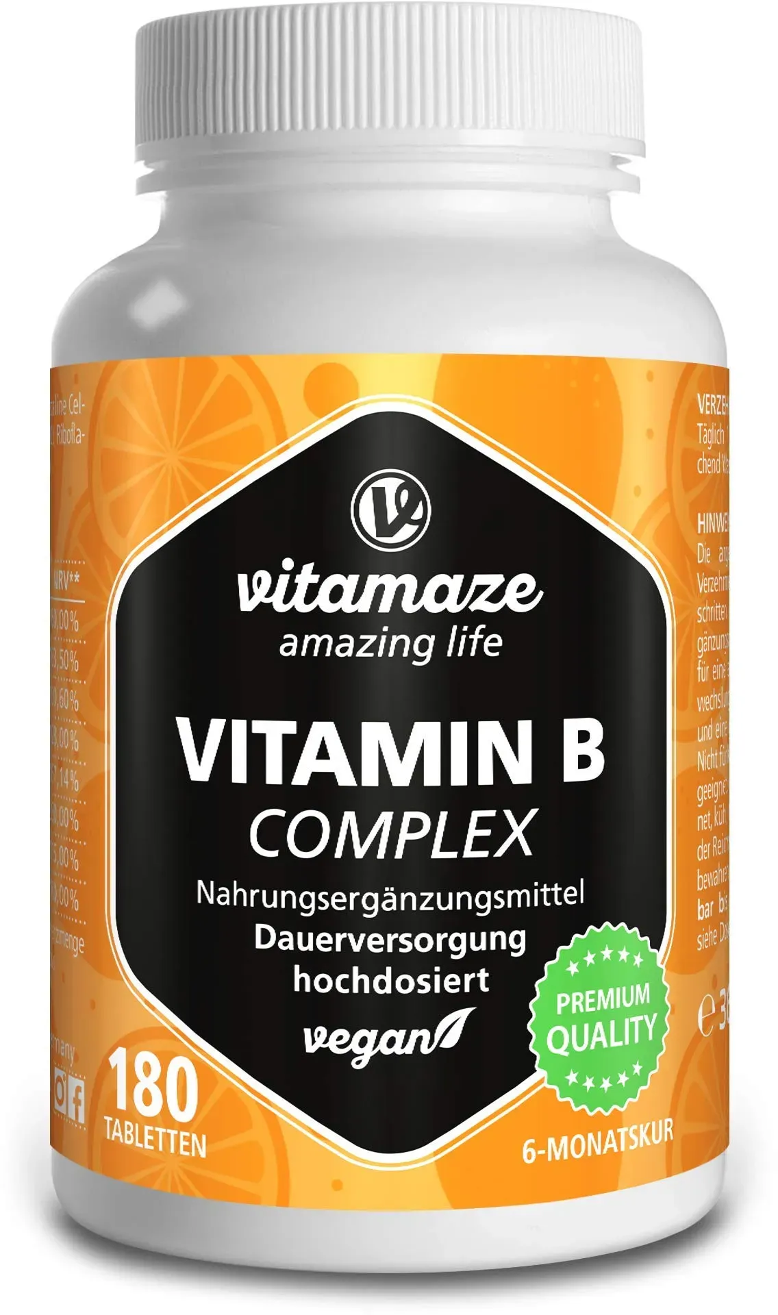Zustand: Neu - 117,73 € / kg - Vitamin B-Complex Vitamin B-Complex Präparate - Vitamaze - amazing life - - EAN: 4260435489603 - IDEAL KOMBINIERT: Unser hochdosiertes Vitamin B12 mit 500 mcg pro Tablette ist als VITAL-Formel zusätzlich mit den lebenswichtigen Vitaminen B6 und B9 (Folsäure) angereichert. Unser Vitamin B12 wird aus hochwertigem Methylcobalamin hergestellt und hat daher die beste und schnellste Bioverfügbarkeit. VEGAN: Das Produkt wird ausschließlich aus nicht-tierischen Zutaten hergestellt und ist daher ideal für VEGAN und VEGETARIAN Unser Produkt ist frei von gentechnisch veränderten Zutaten und unnötigen Zusatzstoffen. BESTE BIOVERFÜGBARKEIT: Ohne den umstrittenen Zusatzstoff Magnesiumstearat (Magnesiumsalze von Fettsäuren) für die OPTIMALE AUFNAHME DER AKTIVSTOFFE. Viele andere Hersteller verwenden Magnesiumstearat in ihren Produkten. DEUTSCHES QUALITÄTSPRODUKT: Wir produzieren ausschließlich in Deutschland. Unsere Produktion basiert auf dem HACCP-Konzept. Bei der Entwicklung und Herstellung unserer Produkte arbeiten wir eng mit Wissenschaftlern und Experten zusammen. ZUFRIEDENHEITS Zufriedene Kunden sind uns wichtig, bitte kontaktieren Sie uns, wenn Sie irgendwelche Fragen zu unseren Produkten haben. Kaufen Sie noch heute OHNE RISIKO zum besten Preis-Leistungs-Verhältnis auf dem Markt, wir bieten 30 Tage kostenloses Rückgaberecht. - Verkäufer: Vitamaze im amazon.de Marketplace Dieses Produkt bietet eine sehr gute Preis-Leistung mit 500 µg B12, Folsäure und B6 für ein ganzes Jahr. ![]() ![]() Vitamaze Vitamin B12 500 mcg hochdosiert, 360 Tabletten für 1 Jahr mit 375 mcg Vitamin B9 Folsäure + Vitamin B6, Natürliche Nahrungsergänzung ohne Zusatzstoffe, Made in Germany