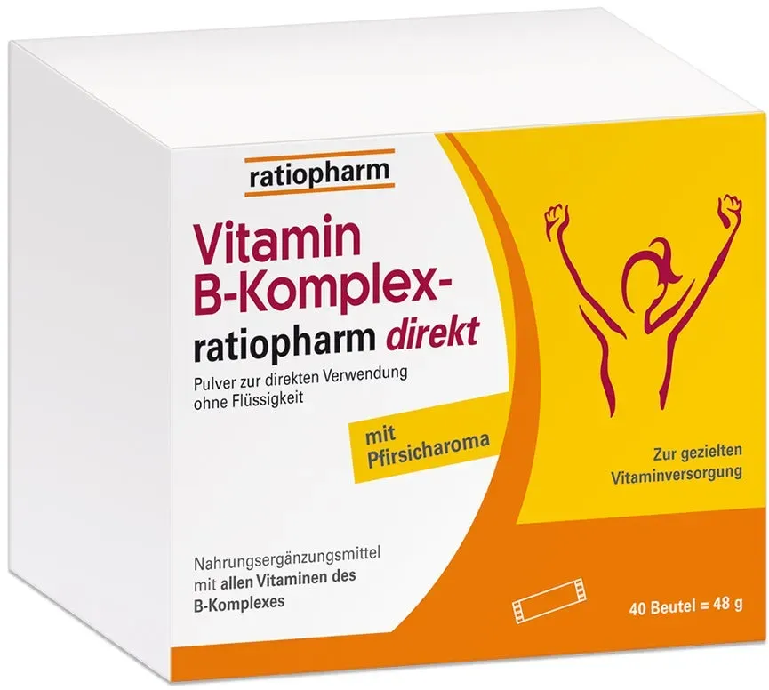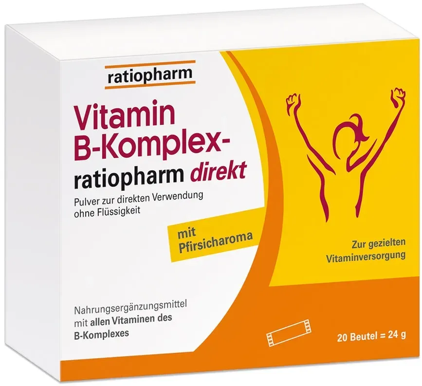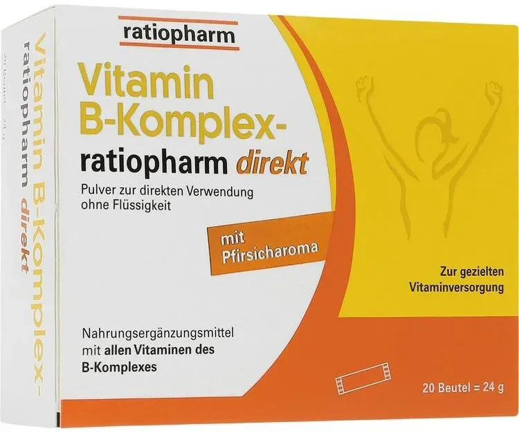 0,45 /St - Kategorie: Nahrungsergänzungsmittel - Ratiopharm - GTIN:4150167831972 - PZN:16783197 - Vitamin B-Komplex ratiopharm direkt - mit 8 B-Vitaminen 20 St - rezeptfrei - von ratiopharm GmbH - Pulver - 20 St - 8,92 Euro bei DocMorris Apotheke - gefunden von billiger.de Dieses Angebot ist eine gute Wahl für das Direktpulver in einer mittleren PackungsgröÃ?e zu einem attraktiven Preis. ![]() ![]() VITAMIN B-KOMPLEX-ratiopharm direkt Pulver 40 St