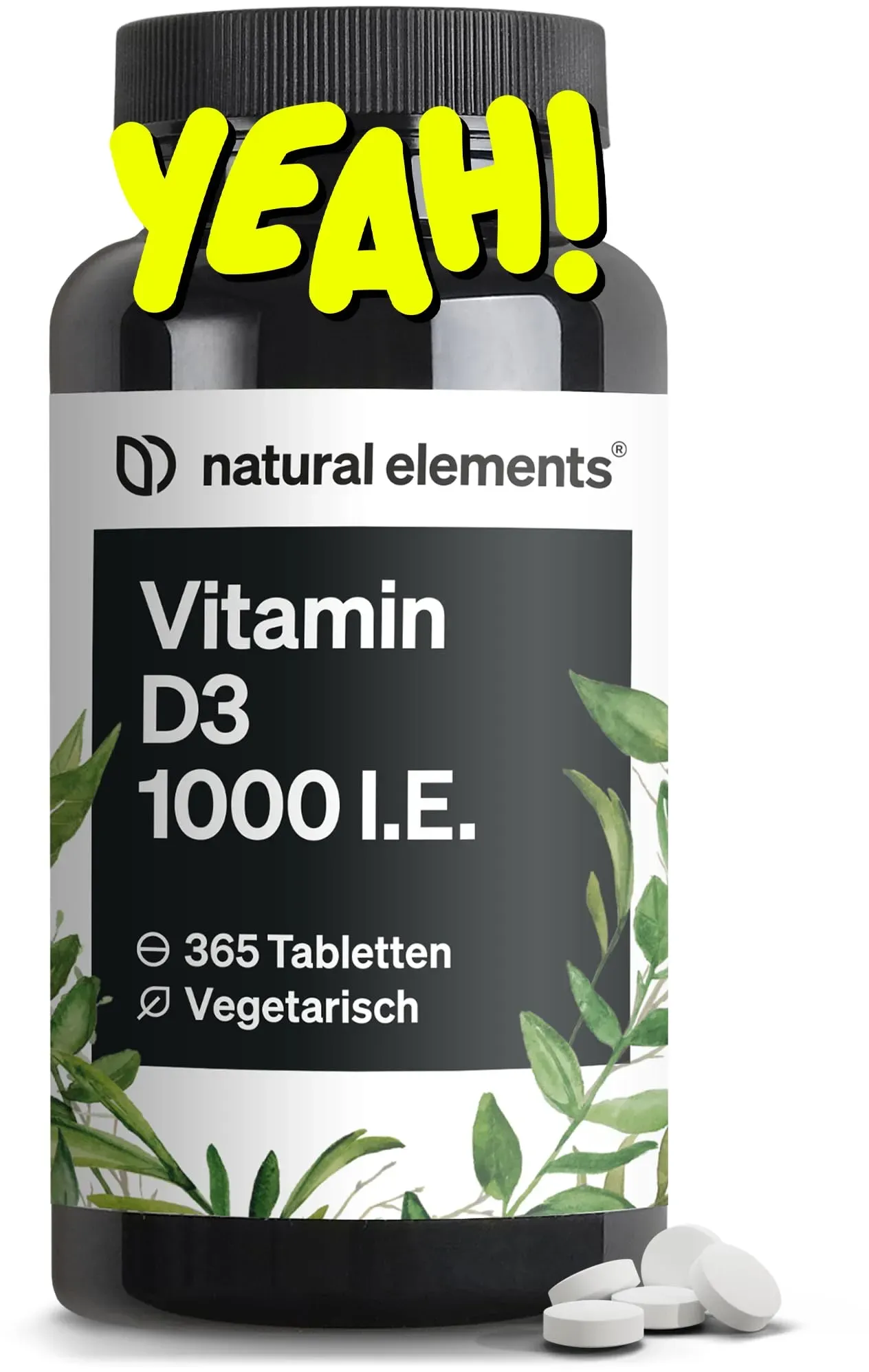 0.04 € / 1 st - Abwehrkräfte Mikronährstoffe Vitamine & Ergänzungen - - gefunden von Kelkoo Dieses Produkt bietet für 8,49 Euro einen Jahresvorrat an Vitamin D3 Tabletten, was es zu einer kosteneffizienten Option macht. ![]() ![]() Natural Elements Vitamin D3 1000 I.E. 365 Tabletten im Jahresvorrat Vitamin D für Knochen und Immunsystem hochdosiert, ohne unnötige Zusätze in Deutschland produziert & laborgeprüft