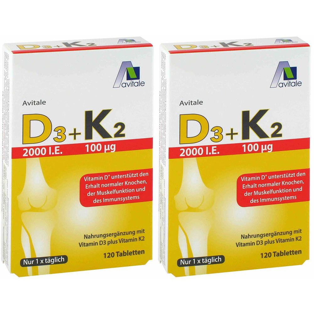 keine Angabe Lieferung in 1-2 Werktagen in_stockAvitale Vitamin D3+K2 2000 I.e. Doppelpack 2x120 St Tabletten