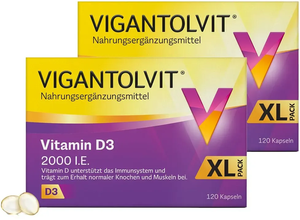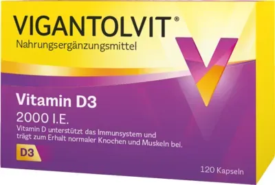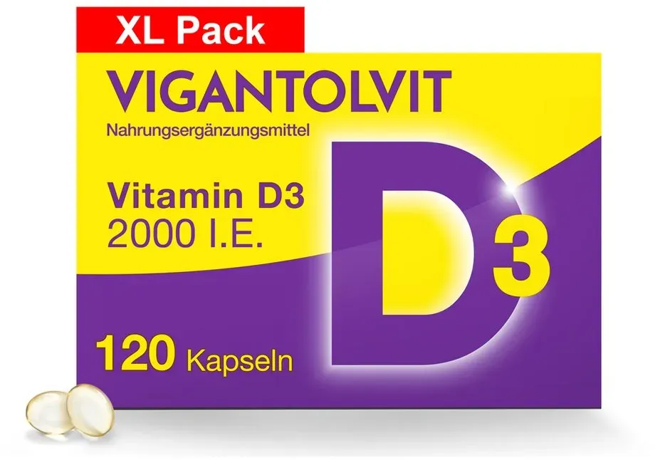 Vitamin d3 2000 i.e. vigantolvit weichkapseln 120 META PreisvergleichMit dem Meta-Preisvergleich suchen Sie gleichzeitig bei den großen Preisvergleich Portalen!Jetzt live Suche nach vitamin d3 2000 i.e. vigantolvit weichkapseln 120 starten! Vitamin d3 2000 i.e. vigantolvit weichkapseln 120 KaufberatungWas ist 'Vitamin D3 2000 I.E. Vigantolvit Weichkapseln 120 St'?Vitamin D3 2000 I.E. Vigantolvit Weichkapseln ist ein hochdosiertes Nahrungsergänzungsmittel zur täglichen Einnahme, das gezielt bei Vitamin-D-Mangel eingesetzt wird. Es unterstützt die normale Funktion des Immunsystems, die Muskelfunktion und den Erhalt gesunder Knochen[2][4]. Die Weichkapseln sind gluten- und laktosefrei, enthalten keine Inhaltsstoffe vom Schwein und sind besonders leicht zu schlucken[2][4]. Eine Kapsel pro Tag genügt. Was muss ich beim Kauf beachten?