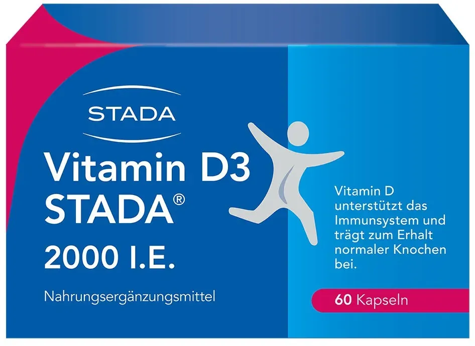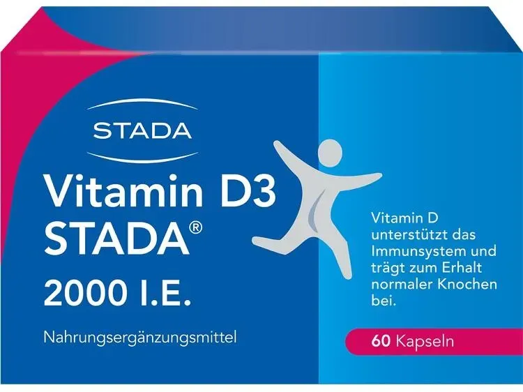 26 Händlerangebote bei billiger.de - Kategorie: Nahrungsergänzungsmittel - STADA - Anwendungsgebiet von Vitamin D3 STADA 2000 internationale Einheiten Tabletten (Packungsgröße: 60 stk)Vitamin D3 STADA 2000 internationale Einheiten Tabletten (Packungsgröße: 60 stk) zur Unterstützung des Immunsystems und gesunder Knochen*, ohne Gluten & Lactose. * Vitamin D trägt zu einer normalen Funktion des Immunsystems und zur Erhaltung normaler Knochen bei. VITAMIN D3, DAS SONNENVITAMIN ZUR UNTERSTüTZUNG DES IMMUNSYSTEMS & GESUNDER KNOCHEN* Wenn von Vitamin D gesprochen wird, ist in den meisten Fällen Vitamin D3 gemeint. Vitamin D3 ist einzigartig, da es in der Haut mit Hilfe von Sonnenlicht gebildet werden kann. Deshalb wird es auch häufig €ždas Sonnenvitamin€œ genannt. Vitamin D3 kann auch mit der Nahrung oder Nahrungsergänzungsmitteln, wie z. B. Vitamin D3 STADA® 2000 I.E., eingenommen werden. Vitamin D ist bei verschiedenen wichtigen Prozessen im Körper beteiligt. Zu den wichtigsten Aufgaben zählen: a) die normale Funktion des Immunsystems b) der Erhalt normaler Knochen c) die Erhaltung der Zähne und d) die normale Aufnahme und Verwertung von Calcium Warum kann es sinnvoll sein, ein Nahrungsergänzungsmittel einzunehmen? Jeder zweite Erwachsene in Deutschland ist schlecht mit Vitamin D versorgt.** über eine ausgewogene Ernährung kann man versuchen, eine Vitamin-D-Unterversorgung auszugleichen €“ dies ist jedoch schwierig. Wenn man 1000 I.E. Vitamin D3 am Tag ... Dieses Produkt ist eine preiswerte Option in Kapselform von einem etablierten Anbieter. ![]() ![]() Vitamin D3 STADA 2000 I.E. 60 St
