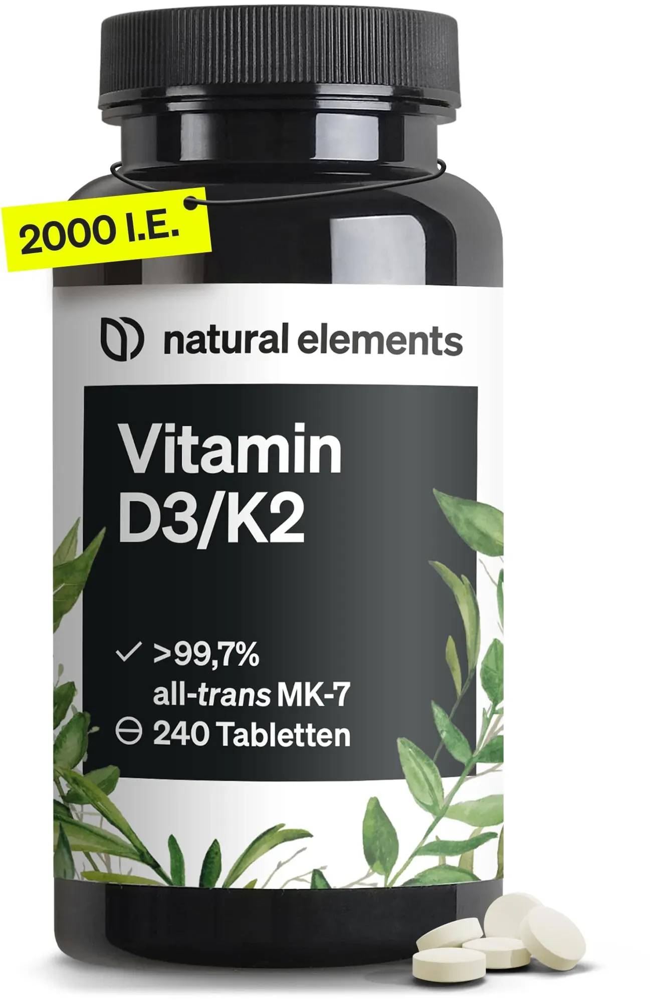 Auf Lager Versand durch Amazonnatural elements Vitamin D3 + K2 ? > 99,7% all-trans MK-7 & 2000 IE Vitamin D3 ? 240 Tabletten ? hochdosiert, optimal bioverfügbar ? ohne unnötige Zusätze ? in Deutschland produziert