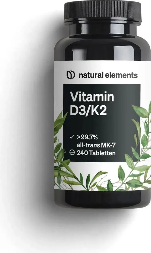 Auf Lager Versand durch Amazonnatural elements Vitamin D3 + K2 Depot ? 180 Tabletten ? Premium-Qualität: K2VITAL® von Kappa ? 99,7+% All-Trans K2-MK7 + 5000 IE Vitamin D3 ? hochdosiert, ohne Zusätze ? laborgeprüfte Qualität
