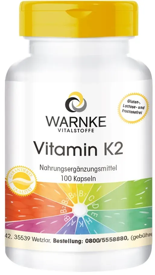 Zustand: Neu - 288,33 € / l - Vitamin K Vitamin K Präparate - fairvital - 69003 - EAN: 8718309447182 - œ” KNOCHEN & BLUTGERINNUNG: Vitamin K unterstützt die Erhaltung normaler Knochen und trägt zur normalen Blutgerinnung bei. œ” Fairvital DEUTSCHE QUALITÄT: Tagesdosis: 10 Tropfen pro Tag enthalten 100µg Vitamin K2. Hochdosiert! Hervorragendes Preis-Leistungs-Verhältnis! Mit Zitronenöl für einen angenehmen Geschmack. œ” BIOVERFÜGBAR & OHNE: Gluten, Fructose, Lactose, Magnesiumstearat, Konservierungsstoffe, Soja, Hefe, Pestizide, Fungizide, Kunstdünger, Farbstoffe, Stabilisatoren und Gentechnik (NON-GMO). VEGANES Vitamin K2 Öl ohne tierische Inhaltsstoffe! œ” GROßPACKUNG: Lange Haltbarkeit in luftdicht versiegelter Flasche. Ca. 1100 Vitamin K2-Öl Tropfen - mehr Effizienz als Pulver! In leichter Flasche mit praktischem Tropfeinsatz! Kann unabhängig von den Mahlzeiten eingenommen werden. œ” MIKROBIELLE REINHEIT Made in Germany: gemäß HACCP. Herkunft der Rohstoffe aus EU und Nicht-EU-Ländern. - Verkäufer: Fairvital - Bioaktive Vitalstoffe im amazon.de Marketplace Ein günstiges Angebot für 100 Kapseln Vitamin K2 von Warnke Vitalstoffe. ![]() ![]() Warnke Vitalstoffe GmbH Vitamin K2 Kapseln 100 St.