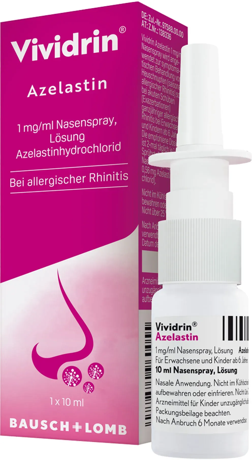 697.00 / 1 l - Kategorie: Arzneimittel - Bausch + Lomb - GTIN:4030571005278 - PZN:12910552 - Verfall: 09/2026 - 6,97 Euro bei ayvita.de - gefunden von billiger.de Ein Azelastin Nasenspray für 6.99 Euro, das eine schnelle Wirkung gegen Pollenallergie verspricht. ![]() ![]() VIVIDRIN Azelastin - 1 mg/ml eBay Nasenspray Lösung 10 ml PZN 12910552