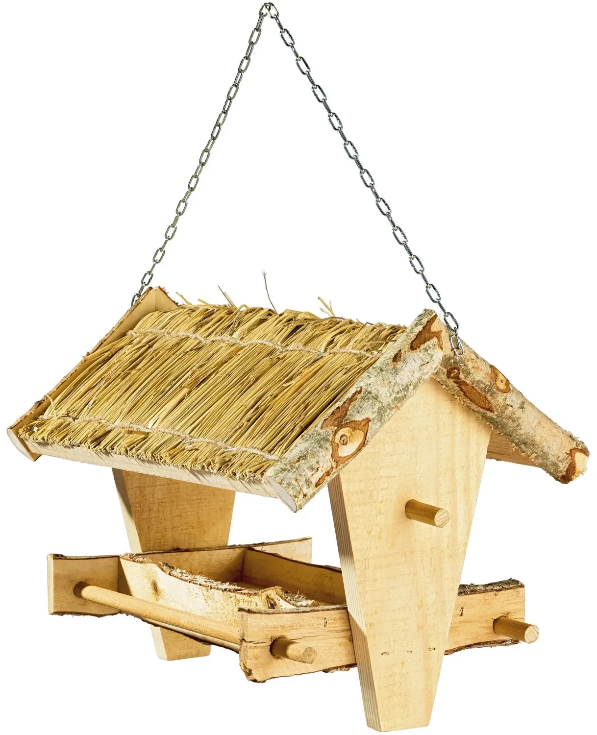 Verfügbarkeit: Auf Lager - Kategorie: Näpfe & Futterautomaten - NATIV - Wildvogelsilo mit Aufhängeöse Vollständig abnehmbarer Deckel zum einfachen Befüllen und Reinigen Ideal für große Kerne und Nüsse Stabile Metallkonstruktion in der Farbkombination grau/braun Maße L x B x H: 14 x 14 x 22,2 cm Gewicht: ca. 0,35 kg - 18,95 Euro bei Amazon Marketplace Lawn & Garden - gefunden von billiger.de Ein traditionelles Vogelfutterhaus mit Strohdach zum Aufhängen, das rustikalen Charme versprüht. ![]() ![]() Vogelfutterstation mit Strohdach hängend