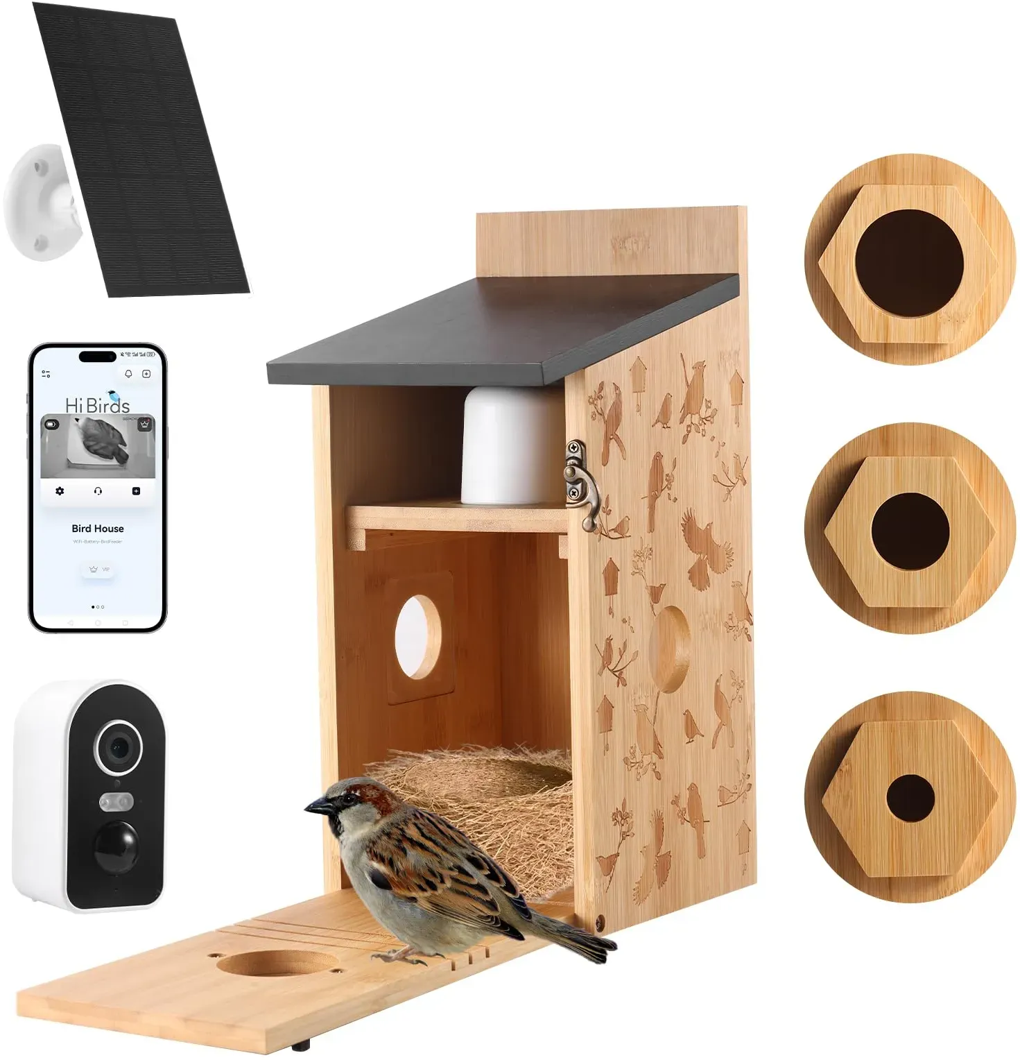 Auf Lager Versand durch AmazonVogelhaus mit Kamera, 5MP HD Nistkasten fr drauen, 2,4G WiFi & App Benachrichtigung, Beobachten Sie das Nisten und Schlpfen, automatische Aufnahme von Vogelvideos & Bewegungserkennung, Solarbetrieb