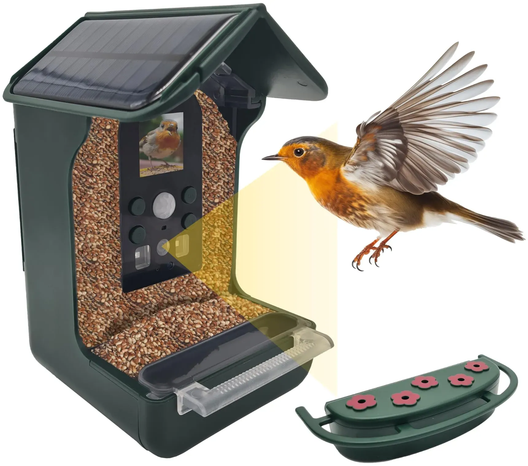Verfügbarkeit: Auf Lager - Kategorie: Vogelhäuser - kidken - ð¦BIRDS ANYTHME, ANYWHERE: Diese intelligente Vogelfutter-Kamera zeichnet jedes Flattern und Zwitschern deutlich auf und erfasst die Vögel automatisch in der App. Mit einer zuverlässigen 2,4GHz/5G-Wi-Fi-Verbindung können Sie die gefiederten Besucher beim Füttern, Singen und Nisten bequem von Ihrem Mobiltelefon aus beobachten, egal wo Sie sind. ð¦Echtzeit-Benachrichtigungen über die Ankunft von Vögeln: Unsere Smart Bird Camera nutzt fortschrittliche KI-Technologie, um über 10.000 Vogelarten zu erkennen. Greifen Sie sofort auf die Details jedes Besuchers zu und lassen Sie sich über die App in Echtzeit benachrichtigen, damit Sie keinen Moment verpassen, wenn die Vögel vorbeikommen. ð¦1080P HD NIGHT VISION CAMERA : Diese Vogelfutter-Kamera verfügt über eine hohe Auflösung von 1080P, um auch bei Nacht atemberaubende Bilder und Videos in leuchtenden Farben aufzunehmen. Das 130°-Weitwinkelobjektiv sorgt dafür, dass Ihnen kein Detail entgeht, von komplizierten Federmustern bis hin zu jeder Nahaufnahme. ð¦5000mAh AUFLADBARER AKKU: Der Smart Bird Feeder ist mit einem 5000mAh-Akku ausgestattet, der für lang anhaltende Energie sorgt. Verwenden Sie das mitgelieferte Solarmodul zum kontinuierlichen Aufladen an sonnigen Tagen oder verwenden Sie das mitgelieferte Netzkabel zum schnellen Aufladen. Das um 360° verstellbare Solarmodul maximiert die Sonneneinstrahlung für optimale Effizienz. ... Ein preisgünstiges Modell von Berger & Schröter, das eine Kamera und Solarfunktion in einem kompakten Futterhaus vereint. ![]() ![]() Berger & Schröter Futterhaus ES50BS 150 ml Vogel Grün, Grau mit Kamera, und Solar