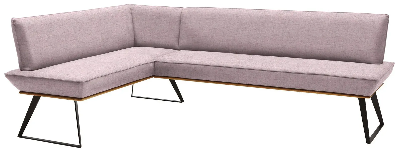 Kategorie: Sitzbänke - VOLEO - Voleo Eckbank 163x243 cm MALIBU Modernes Design trifft Komfort. Erleben Sie die perfekte Fusion von Stil und Funktionalität mit der Voleo Eckbank 163x243 cm MALIBU. Dieses moderne Möbelstück besticht durch sein trendiges Design in einem eleganten rosa Tiama 9180 Bezug, der jedem Raum eine frische und einladende Atmosphäre verleiht. Der Rahmen aus massiv geölter Eiche sorgt für eine natürliche und warme Optik, während das schwarz matte Metallgestell und die Füße aus Metall dem Ganzen einen modernen Touch verleihen. Mit einer Sitzhöhe von 50 cm und einer Sitztiefe von 51 cm bietet die Eckbank optimalen Sitzkomfort. Robust und langlebig, hält sie einer Belastbarkeit von bis zu 360 kg stand und rt mit 54.000 Scheuertouren eine langanhaltende Qualität.Eckbank MALIBU Komfort und Stil vereint Die Voleo Eckbank MALIBU ist nicht nur ein Blickfang, sondern auch äußerst komfortabel. Die großzügige Sitzfläche lädt zum Verweilen ein, während der hochwertige Webstoff für ein angenehmes Sitzgefühl sorgt. Der rosa Farbton harmoniert perfekt mit dem schwarzen Metallgestell und den geölten Eichenrahmen, was das Möbelstück zu einem Highlight in jedem modernen Wohnraum macht. Lassen Sie sich von der Kombination aus Design und Funktionalität überzeugen und schaffen Sie einen stilvollen Sitzbereich in Ihrem Zuhause. Bestellen Sie jetzt und erleben Sie den Komfort selbst! - 1076,50 Euro bei Zurbrüggen Wohn-Zentrum - gefunden von billiger.de ![]() ![]() Voleo Eckbank 163x243 cm MALIBU - B/H/T ca. 163,00x87,00x243,00