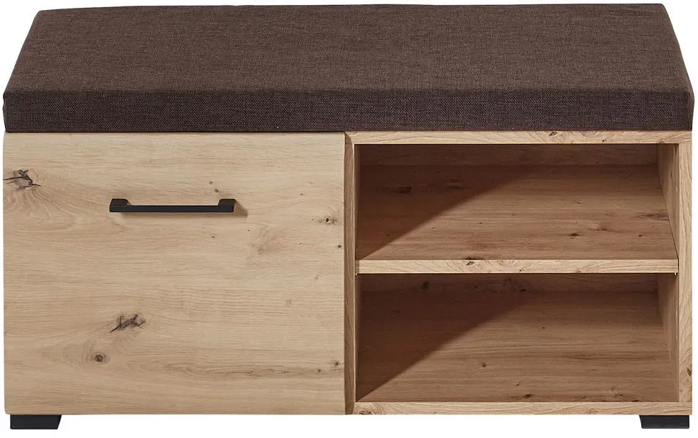 Kategorie: Dielenmöbel - VOLEO - GTIN:4250314553846 - Diese gepolsterte Garderobenbank mit Stauraum schafft Ordnung und Komfort im Eingangsbereich. Denn neben den 4 Fächern, von denen sich 2 hinter einer Drehtür befinden, bietet das Möbel eine großzügige Sitzfläche (Breite: ca. 84 cm) zum Wechseln der Fußbekleidung. Während Sie Ihre Büroschuhe gegen Hausschlappen eintauschen, haben Sie es auf der braunen Auflage mit Polyurethanschaumkern ausgesprochen bequem. So stimmen Sie sich schon direkt bei der Ankunft auf einen gemütlichen Feierabend ein. Dank Soft-Close-System gestaltet sich das Ein- und Ausräumen überaus angenehm: Der sanftschließende Mechanismus ermöglicht eine geräuscharme Nutzung und schont das Material, wodurch die neuwertige Optik des Einrichtungselements lange erhalten bleibt. Mit einer Dekorfolie im Farbton 'Artisan Eiche' versehen, setzt das Design natürliche Impulse, die eine wohnliche Atmosphäre erzeugen. Ein Bügelgriff sowie eckige Füße in Schwarz runden den Look stimmig ab. Diese gepolsterte Garderobenbank mit Stauraum liefert den perfekten Mix aus moderner Wohnlichkeit und Funktionalität! - 149,00 Euro bei XXXLutz.de - gefunden von billiger.de Dieser Garderobenschrank bietet eine solide Stauraumlösung zu einem attraktiven Preis. ![]() ![]() Voleo Garderobenschrank, Graphit, Eiche Artisan, Holzwerkstoff, 4 Fächer, 55x179x37 cm, Beimöbel erhältlich, Typenauswahl, Garderobe, Garderobenschränke