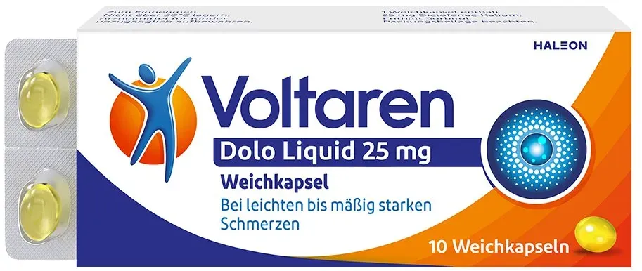 0,40 /Stück - Kategorie: Arzneimittel - GlaxoSmithKline - GTIN:4150050239397 - PZN:05023939 - Voltaren Dolo Liquid 25 mg Weichkapseln Wirkstoff: Diclofenac-Kalium Anwendungsgebiete: Bei leichten bis mäßig starke Schmerzen und bei Fieber. Hinweis: Enthält Sorbitol. - 7,92 Euro bei medikamente-per-klick.de - gefunden von billiger.de Dieses Doppelpack Voltaren Dolo 25mg Tabletten ist eine gute Wahl für alle, die eine gröÃ?ere Menge benötigen und dabei sparen möchten. ![]() ![]()