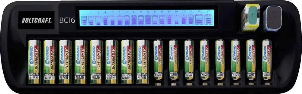 Zustand: Neu - Ladegeräte für Haushaltsbatterien - Voltcraft VOLTCRAFT - 2127444 - EAN: 4053199972302 - Für bis zu 16 AAA- oder AA-Akkus 2x Aufnahmefach für 9V-Blockbatterien Ladestrombereich 500mA/250mA/100mA für AA/AAA/9V Helles LC-Display Kurzschlussschutz - Verkäufer: Voelkner im amazon.de Marketplace ![]() ![]() VOLTCRAFT BC16 - Rundzellen-Ladegerät NiMH, eBay LiIon Mignon (AA), Micro (AAA), 9 V...