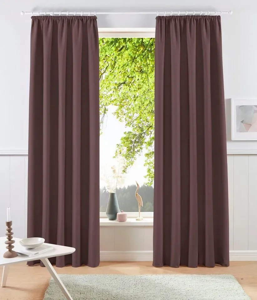 lieferbar-in 1-2 Werktagen bei dirmy home Vorhang Raja, Gardinen mit Kräuselband, Vorhänge Wohnzimmer (2 St), Kräuselband, blickdicht, Polyester, 2er-Set, Bestseller, einfarbig, modern, pflegeleicht, Mikrofaser braun 140 cm x 145 cm
