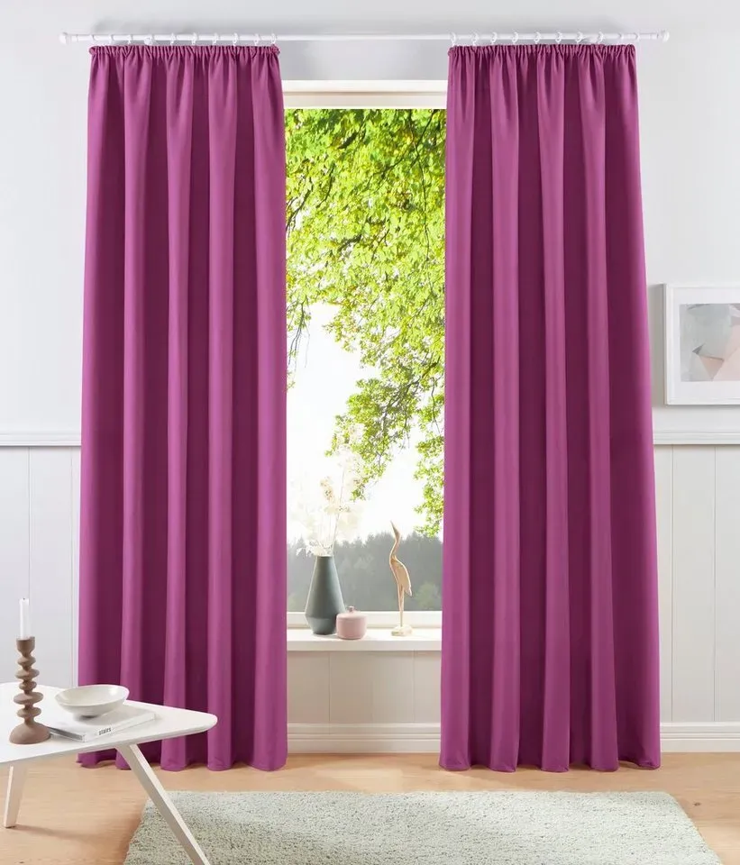 lieferbar-in 1-2 Werktagen bei dirmy home Vorhang Raja, Gardinen mit Kräuselband, Vorhänge Wohnzimmer (2 St), Kräuselband, blickdicht, Polyester, 2er-Set, Bestseller, einfarbig, modern, pflegeleicht, Mikrofaser lila 140 cm x 145 cm