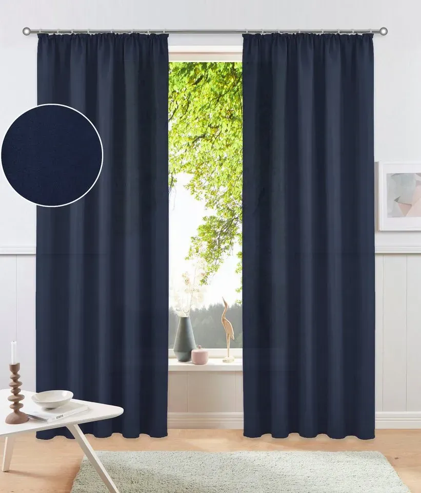 lieferbar-in 1-2 Werktagen bei dirmy home Vorhang Raja, Gardinen mit Kräuselband, Vorhänge Wohnzimmer (2 St), Kräuselband, blickdicht, Polyester, 2er-Set, Bestseller, einfarbig, modern, pflegeleicht, Mikrofaser blau 140 cm x 145 cm