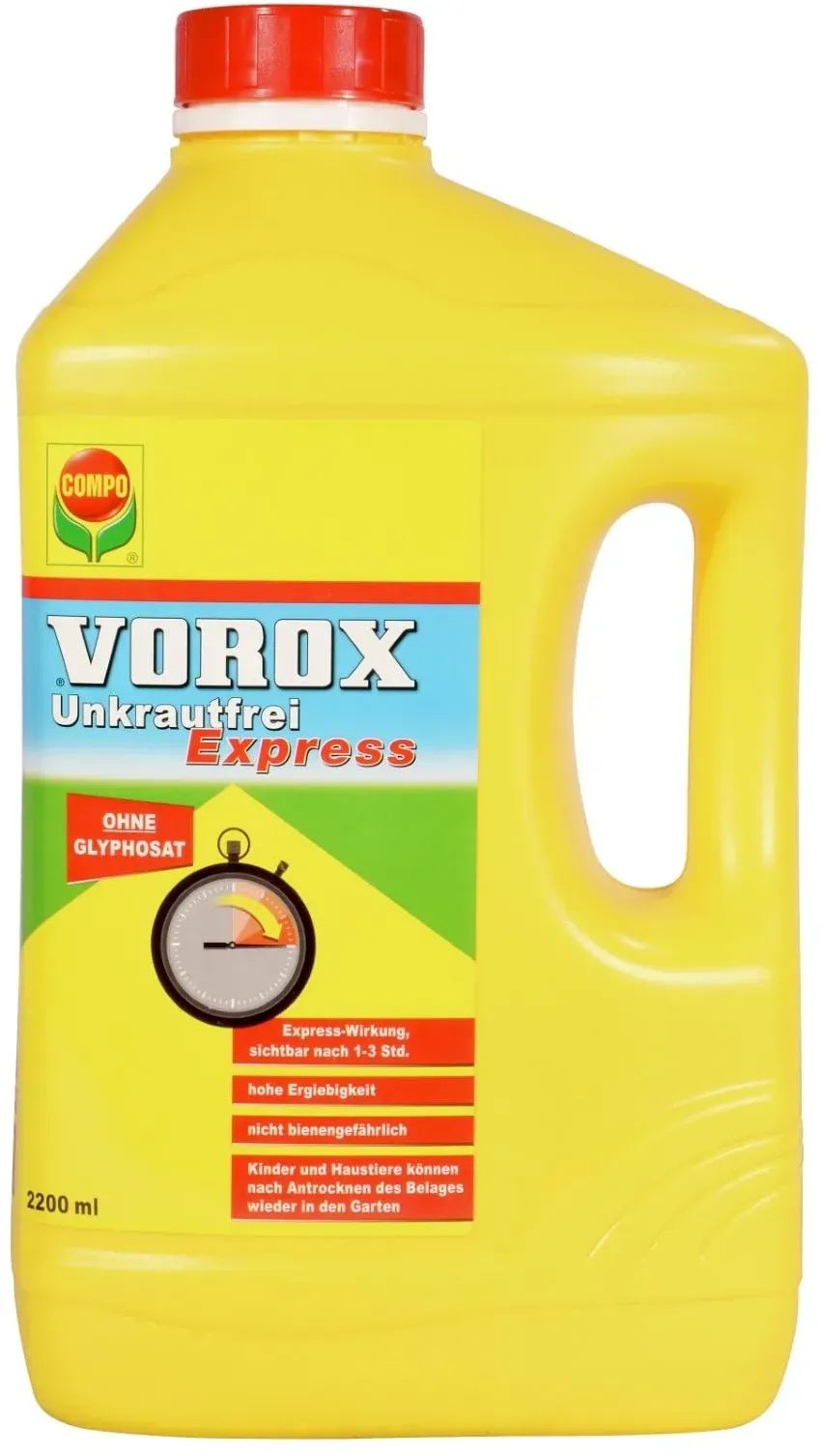 2 Händlerangebote bei billiger.de - Kategorie: Pflanzendünger - Compo - Hochwirksamer Unkrautvernichter: Wirkt gegen mehr als 50 ein- und zweikeimblättrige Unkräuter, außerdem gegen Algen und Moos, optimal für die Anwendung zwischen Zier- und Gemüsepflanzen Expresswirkung: Erste Ergebnisse bereits nach 1-3 Stunden, einsetzbar vom zeitigen Frühjahr bis Spätherbst, wirkt auch bei niedrigen Temperaturen Auf Basis der Natur: Mit einem Wirkstoff natürlichen Ursprungs, ohne Glyphosat, nicht bienengefährlich, direkt nach Antrocknung des Belags können Haustiere wieder in den Garten Einfache Anwendung: Konzentrat mit Wasser verdünnen, Unkraut besprühen, abgestorbenes Unkraut entfernen Lieferumfang: 1 VOROX Unkrautfrei Express, Konzentrat, 2,2 Liter, Art.-Nr. 22661 - GTIN:4008398126612 ![]() ![]() Compo VOROX Unkrautfrei Express - Bekämpfung von Unkräutern an Zierpflanzen, Obst und Gemüse, wirkt gegen Algen, Moos und mehr als 50 Unkräuter - 2,2L Konzentrat