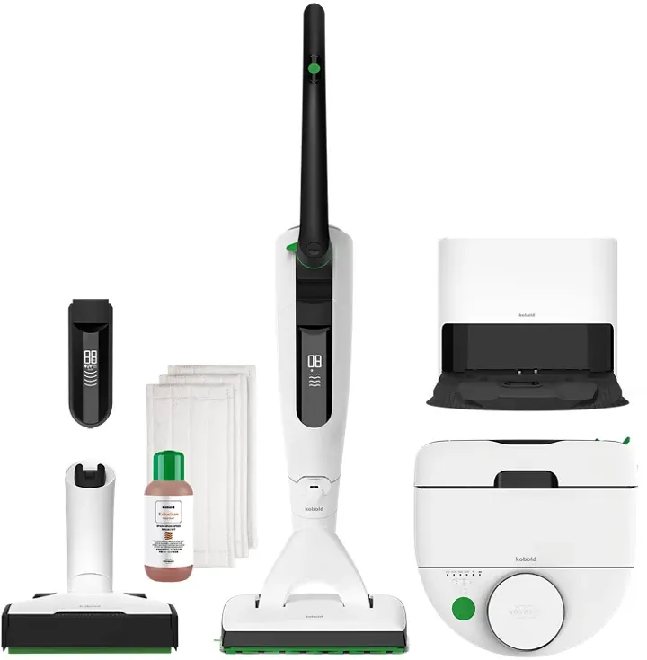 Kategorie: Saugroboter - Vorwerk - GTIN:4053584102550 - DAS Glanzpaar. DER Saugroboter und DER Besserwischer, ein unschlagbares Team für universelle Sauberkeit. Der VR7 Saugroboter ist Testsieger der Stiftung Warentest (veröffentlicht am 21.12.2023). *** Herausragende Eckenreinigung dank D-förmigem Design. Extra breite Haupt- und Seitenbürste für optimale Schmutzaufnahme auf Hartböden und Teppichen. Bis zu 60 Tage kein Kontakt zu Schmutz dank Absaugstation: Saugt Schmutz des Saugroboters automatisch und hygienisch ab. Ideal bei Allergien. Im Set enthalten ist der noch effektivere Kobold VK7 Akku-Staubsauger mit unfassbarer Akkulaufzeit. Das Set ist Testsieger der Stiftung Warentest (veröffentlicht am 18.06.2025). *** Kabellos, super leise und saugstark auch bei grobem Schmutz. Automatische Bodenerkennung für all deine Böden. - 2419,00 Euro bei vorwerk.com - gefunden von billiger.de Ähnlich wie das vorherige Angebot, bietet dieses "Cleanteam" eine komplette Reinigungslösung mit dem VR7 Saugroboter und dem VK7 Akku-Staubsauger, hier in einer spezifischen Paketvariante. ![]() ![]() Vorwerk Kobold VK7 Akku-Staubsauger & VR7 Saugroboter DAS Cleanteam (P)