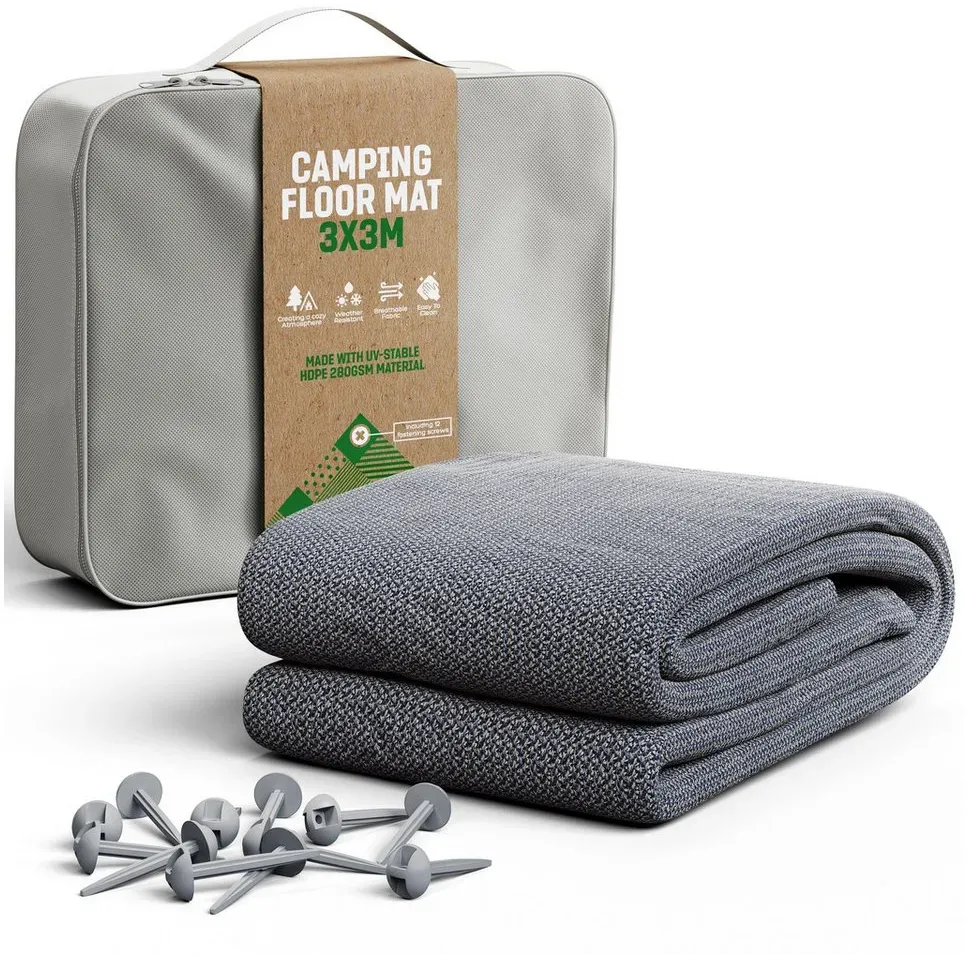 Kategorie: Zelt-Zubehör - tubiaz - Material und Gewicht Der Größe Vorzeltteppich 250x250 cm,das Gewicht 2.2 kg. 13 x Heringe 95mm lang aus Kunststoff mit hochwertiger Aufbewahrungstascheder sicheren Aufbewahrung nach dem Campen.Der Markisenteppich ist flexibel, leicht zu falten und kann in unserer Tragetasche mit Reißverschluss verstaut werden, sodass Sie ihn sofort tragen und leicht reisen können. Eigenschaften HDPE Polyethylen hoher Dichte besonders robust und langlebig ist. UV-stabilisert, handwaschbar und schnell trocknend, schimmelfrei, luftdurchlässig, wasserduchlässig, farbbeständig, recyclefähig, gesäumte Ränder, langlebig und faltbar, rutschfest, Vorsicht: entflammbar vor offenem Feuer fernhalten!! Praktische Benutzung Netzartige Struktur, um unangenehme Gerüche unter dem Teppich zu vermeiden.Der Sitzplatz vor Ihrem Zelt bleibt mit diesem Teppich sauber.ob Barfuß oder Schuhe -sehr angenehm zu begehen. Ausreichend Befestigungslöcher und Heringe sorgen dafür, dass der Campingteppich sicher und flach auf dem Boden liegt (12 ösen | 13 Heringe)sodass Sie ihn flexibel an verschiedenen Terrains befestigen können. Nach der einfachen Fixierung können Sie sich bequem darauf bewegen Bestens geeignet für Outdoor Aktivitäten Universelle Zeltbodenunterlage.Wird im Outdoor-Bereich sowohl für das Stationäre- als auch für das Reise-Camping benutzt. Auch einsetzbar als Pavillon-Teppich, Poolunterlage,Kinder- und Baby-Spielteppich für Innen und Draußen, als extra große XL ... Ein Dometic Vorzeltteppich, der für seine Wetterfestigkeit und Markenqualität geschätzt wird. ![]() ![]()