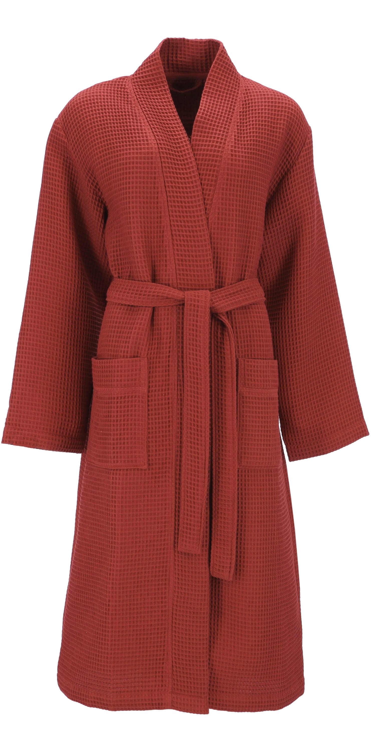 lieferbar-in 4-5 Werktagen bei dirVossen Bademantel Siam, ideal für Sauna & Spa, Hotelbademantel, Morgenmantel, Langform, Baumwoll-Mix, Kimono-Kragen, Gürtel, Waffelpique rot XXS/XS