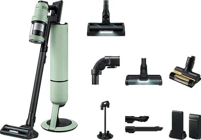Samsung - EAN: 8806097026242 - Vs90f40eem/w, Bespoke Ai Jet Ultra Akku+ Completeclean Unser Stärkster Akku-Handstaubsauger - Mit Einer Saugkraft Bis Zu 400 W Und Motorleistung Bis Zu 1050 W Beleuchtete Slim Led+ Bürste - Reinigt Hartböden Gründlich Und Schonend Wifi-Fähig - Per Wifi Einstellungen Und Reinigungserinnerungen Anpassen Hepa Filter - Fängt Feine Staubpartikel Effektiv Ein All-In-One Clean Station - Einfache Und Hygienische Staubentleerung Inklusive Aufladen Ai Cleaning Mode - Passt Automatisch Die Akku- Und Reinigungsleistung Verschiedenen Reinigungsumgebungen An Wechselbarer Und Langlebiger Akku - Wähle Die Akkugröße Je Nach Bedarf Längenverstellbares Teleskop-Saugrohr - Ergonomische Passende Höheneinstellung - bei mediamarkt.de - aus Yadore Produktdaten ![]() ![]() Samsung Akku-Handstaubsauger BESPOKE AI Jet Ultra Akku+ CompleteClean, VS90F40EEM/WD, 1050 W, beutellos grün