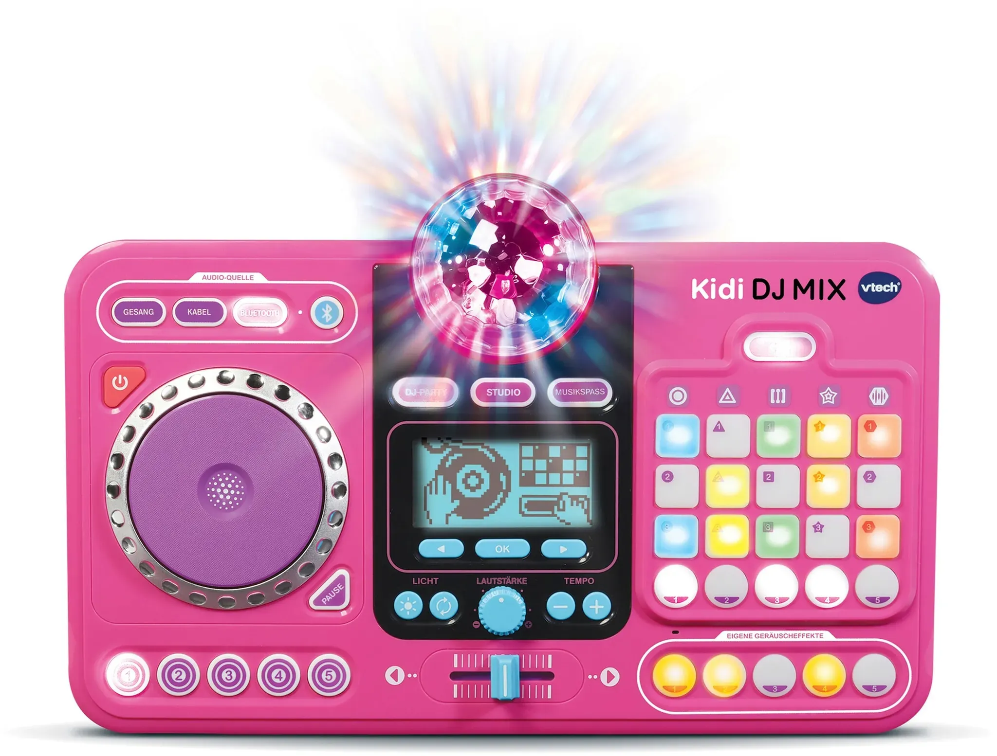 Zustand: Gebraucht - DJ Mischer - Vtech - 80-547304 - EAN: 3417765473043 - Eigene Musik mit dem DJ Set kreieren: 15 vorinstallierte Lieder aus unterschiedlichen Genres können von den Kindern nach Herzenslust bearbeitet werden, wobei sie ihrer Kreativität freien Lauf lassen Mit Jog-Wheel, mit Sound-Light-Pad mit über 2000 Sound- und Lichtkombinationen, Crossfader, Geräusch- und DJ-Effekten, eingebautem Mikrofon und Display; auch eigene Soundeffekte aufnehmbar Über ein Kabel oder Bluetooth kann ein externer Musik-Player mit dem Kidi DJ Mix verbunden werden, um die eigene Lieblingsmusik zu bearbeiten / Mit coolem Musikspiele Die selbst gemischten Songs können gespeichert und immer wieder angehört werden / Das bunte Discolicht, das passend zur Musik leuchtet, sorgt für zusätzlichen Spaß Lieferumfang: 1 x VTech Kidi DJ Mix / Deutsche Version / Alter: 6-1 / 4 x AA Demobatterien / Mit Lautsprecher, integriertem Mikrofon und Lautstärkeregler / Art. Nr: 80-547304 - 5 Händler im amazon.de Marketplace Mit 51.99 Euro ist dies ein weiteres preiswertes Angebot für das Standardmodell. ![]() ![]() Vtech Kidi DJ Mix