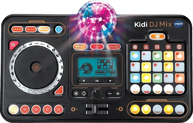 VTech - EAN: 3417765473043 - Mit dem 10-in-1 Kidi DJ Mix zum Superstar werden! DJ-Pult mit Jog-Wheel, LED-Launchpad, Crossfader, eingebautem Mikrofon und Display: Zum DJ oder zur DJane werden, selbst Musik mischen, Geräuscheffekte zur Musik hinzufügen und zu den eigenen Kreationen singen. Mit dem LED-Launchpad über 2000 verschiedene Licht- und Soundkombinationen erzeugen und tolle Effekte hinzufügen. Mit 15 Melodien aus verschiedenen Musikgenres (z. B. Hip Hop, Techno/House, Electro Pop). Coole Effekte mit dem Jog-Wheel erzeugen. Die selbst gemischten Songs speichern und immer wieder anhören. Dank eingebautem Mikrofon, benutzerdefinierte Geräuscheffekte aufnehmen oder vorinstallierte Geräuscheeffekte auswählen und zur Musik hinzufügen. Mit Discolicht, das passend zur Musik leuchtet. Mit tollen Musikeffekten die Geschwindigkeit erhöhen, Echo hinzufügen oder die Tonhöhe ändern. Externen Musik-Player via Kabel oder Bluetooth anschließen, die eigene Lieblingsmusik hören und mitsingen. 2 coole Musikspiele Mit Köpfhöreranschluss.kl Mit Netzanschluss. Integrierter Lautsprecher und Lautstärkeregler. Kindersicheres Batteriefach und Abschaltautomatik. Demobatterien sind enthalten - bei voelkner.de - aus Yadore Produktdaten Bueromarkt-ag.de bietet das DJ Mischpult mit Mikrofon für 56.98 Euro an, was ein gutes Angebot für ein Modell mit zusätzlichen Funktionen ist. ![]() ![]() vtech Kinder-Musikinstrument Kidi DJ Mix, 547304, DJ Mischpult mit Mikrofon elektronisch, ab 6 Jahre