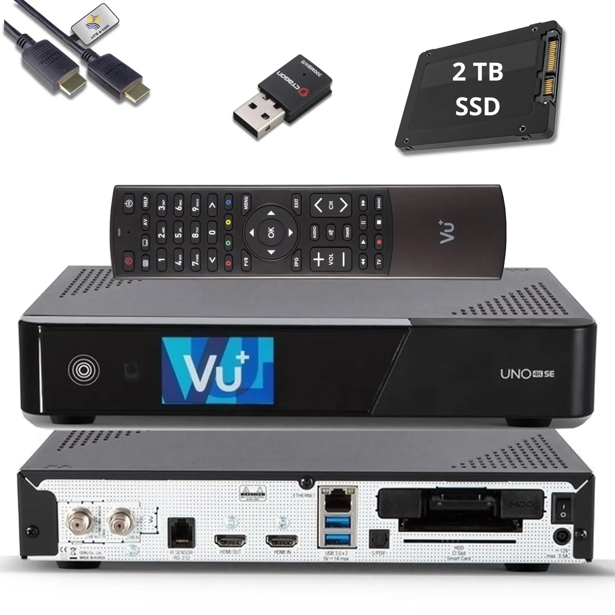 Der Vu+ Uno 4K SE verfügt über einen ARM DualCore-Prozessor mit 2 x 1.700 MHz, der für schnelle Umschaltzeiten und stabile Performance sorgt. 2 GB DDR3 RAM und 4 GB eMMC Flash bieten genug Kapazität für moderne Anwendungen und Aufnahmen. Der Receiver unterstützt DVB-S2/S2X FBC Twin Tuner (8 Demodulatoren), was für schnellen Kanalwechsel und gleichzeitiges Aufnehmen und Abspielen sorgt. ? VU+ UNO 4K SE Twin Satelliten Receiver HDMI 2.0 (Ein- und Ausgang), Gigabit LAN, USB 3.0, optischer S/PDIF-Ausgang, RS232, Smartcard-Reader und ein Wechselrahmen für 2,5" SATA-Festplatten (max. 10,5 mm Bauhöhe). Ein 2,4" TFT-LCD-Display ermöglicht die Anzeige von Programminformationen oder Mini-TV. Linux-basiert, kompatibel mit Open-Source-Systemen wie Enigma2, was viele individuelle Einstellungen und Erweiterungen erlaubt. Unterstützung für UHD (2160p), HDR10, HLG, HEVC/H.265, MPEG-2/4, PAL/NTSC. ? Beliebte Merkmale & Marken