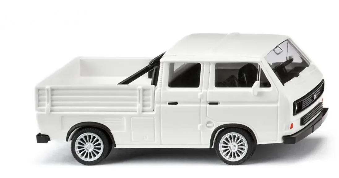 2 Händlerangebote bei billiger.de - Kategorie: Modelleisenbahn - Wiking - Karosserie und Pritsche grasgrün, Fahrgestell mit Kühlergrill und Lufteinlass schwarz. Inneneinrichtung sandgelb mit anthrazitgrauem Lenkrad. Silbergraue Plane und silberne Felgen. Vordere Blinker orange bedruckt, Rücklichter karminrot bedruckt. VW-Logo auf Kühlergrill in silber. Scheinwerfer per Hand gesilbert. So mochte man die Doka des VW T3, denn gerade Landschaftsgärtner wussten die Bulli-Kombi aus großer Kabine und kompakter Ladefläche mit Plane zu schätzen. Und natürlich war das Grasgrün eine bevorzugte, direkt bei Volkswagen bestellbare Farbe gewesen. Zu Produktionszeiten seines Vorbilds war der Transporter der dritten Generation bei WIKING bereits in der modellbauerischen Planung gewesen, aber die Doka verschwand damals als Muster im Archiv. Lediglich der Kastenwagen und der Bus sollten in den 1980er-Jahren in Sammlerhände gelangen. Der VW T3 war einst die dritte Generation des VW-Transporters, der das Straßenbild der 1980er-Jahre in Deutschland und Europa prägte. Der T3 wurde von 1979 bis 1992 produziert und war zugleich die letzte Transporter-Baureihe mit Heckmotor und -antrieb, was dem Vorbild bis heute in der Bulli-Chronologie Klassiker-Status verleiht. VW T3 Doppelkabine - grasgrün, 1:87 Wiking VW T3, Busmodell, Vormontiert, 1:87, VW T3, Unisex, 1 Stück(e) Wiking VW T3. Produkttyp: Busmodell, Bauart: Vormontiert, Maßstab: 1:87 - GTIN:4006190293099 Der KWB Wiking 029310 VW T3 Doppelkabine weiß ist ein weiteres detailgetreues Modell im kleineren Maßstab für Sammler. ![]() ![]() KWB Wiking 029310 VW T3 Doppelkabine weiß