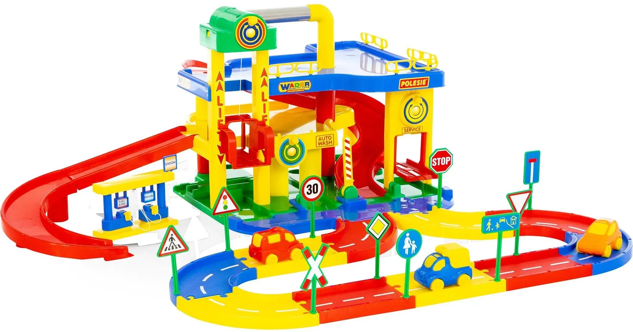 3 Händlerangebote bei billiger.de - Kategorie: Rennbahnen, Parkhäuser & Zubehör - Wader - Wader Garage No. 1. Deutschlands meist gekaufte Garage im farbenfrohen Design. Mit integriertem Tragegriff, Aufzug, Hebebühne, Waschanlage, seitlicher Abfahrt, Tankstelle und kleinen Fahrzeugen. Keine Montage erforderlich, sofort bespielbar. -inklusive Wader Straßensystemen, 1,75 m Strecke -mit viel Zubehör -große, griffige Drehknöpfe Ab n. - GTIN:4810344037831 ![]() ![]() WADER Garage Nr. 1 Parkhaus Parkgarage Autogarage mit Spielstrasse