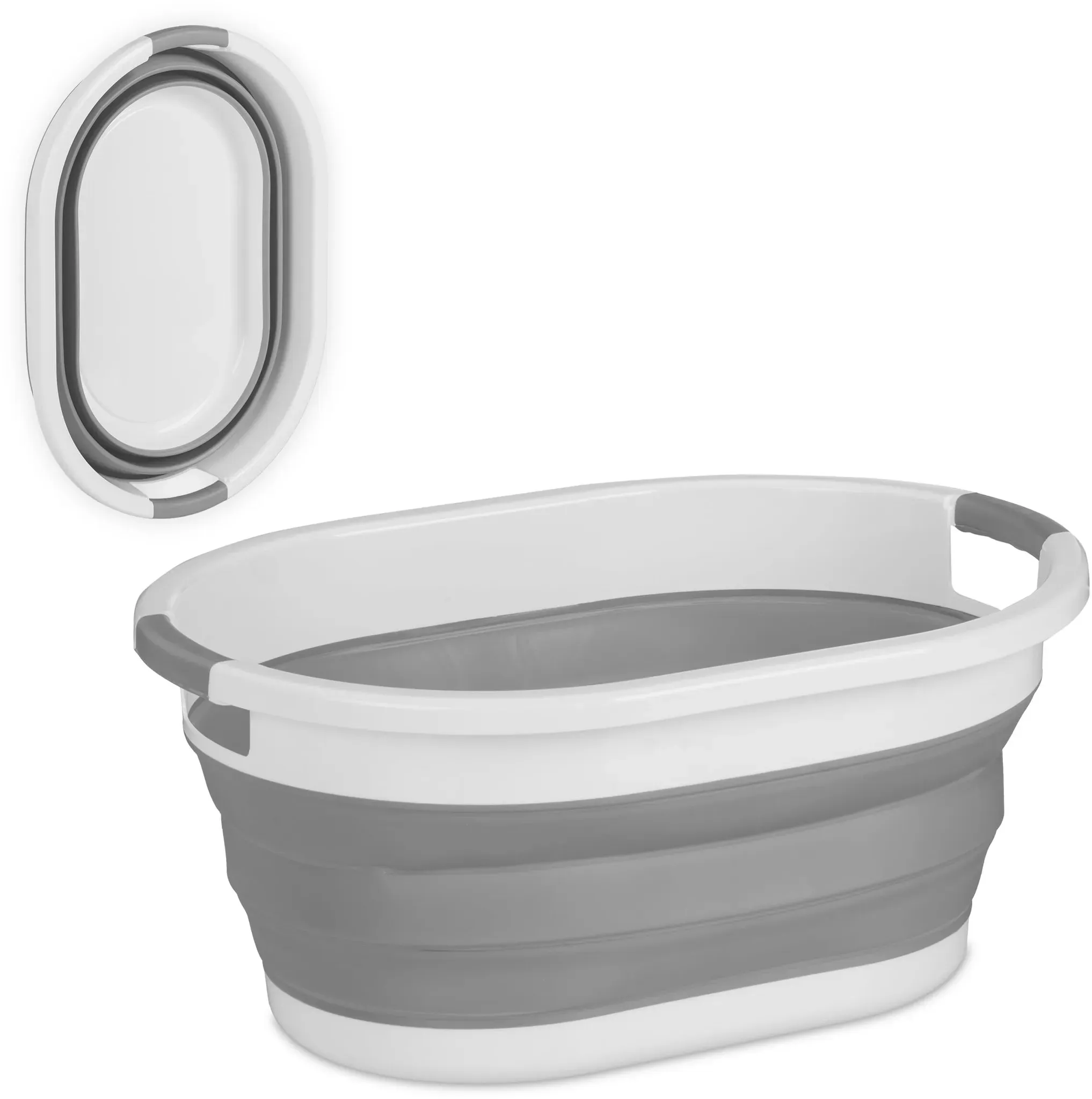 3 Händlerangebote bei billiger.de - Kategorie: Wäschesammler - Relaxdays - Für Wäsche: Transportiere Schmutzwäsche oder saubere Kleidungsstücke mit dem faltbaren Wäschekorb Platzsparend: Die Wäschewanne lässt sich zusammenklappen und bequem verstauen - Design in Grau-Weiß Praktisch: Faltwäschekorb mit Griffen - Leichter Transport zwischen Waschmaschine und Wäscheständer Robust: Stabile Waschschüssel aus PP- und TPR-Kunststoff - Auch als Aufbewahrungskorb verwendbar Basics: Waschwanne HxBxT: ca. 24 x 53 x 38 cm - Zusammengeklappt ca. 7 cm hoch - Volumen: ca. 22 l - GTIN:4052025472283 ![]() ![]()