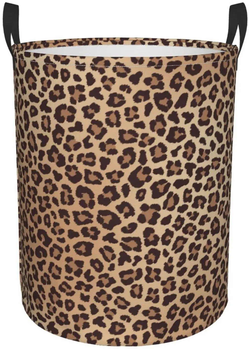 ![]() ![]() fjauoq Brauner Leoparden-Wäschekorb, zusammenklappbar, Wäschekörbe mit Griffen, schmutzig, faltbar, Wäschekorb, leicht zu tragen, Wäschesack, runder Aufbewahrungskorb für Schlafzimmer, Spielzeug, M