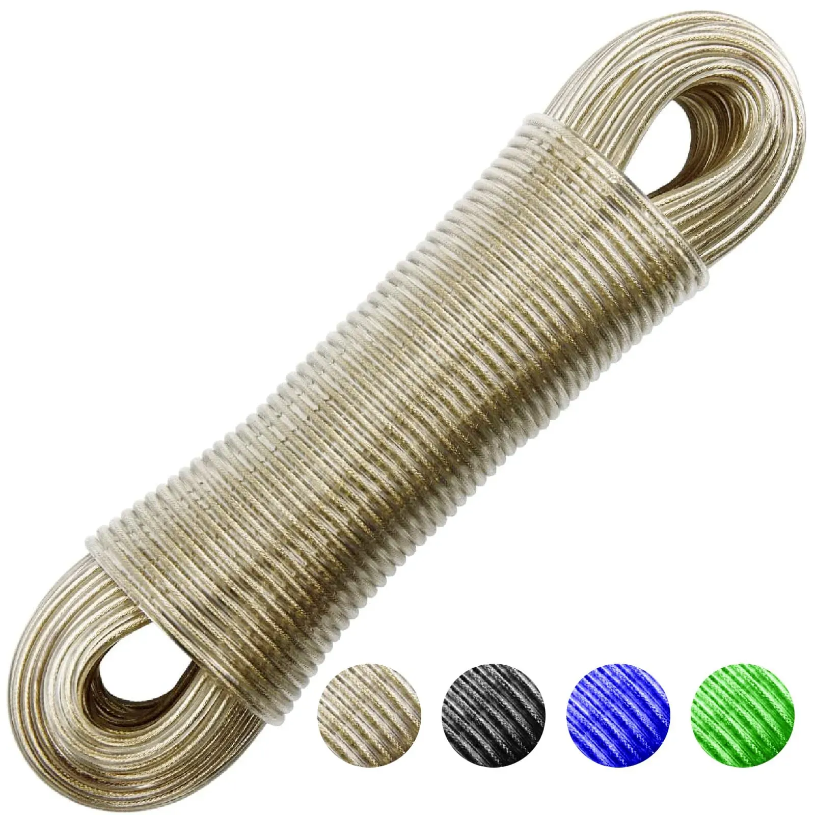 Auf Lager Versand durch AmazonhomeXpert Wäscheseil/Wäscheleine extra stark 20m mit Vollstahleinlage 2,7 mm transparent ummantelt, Wäscheleine mit stahlkern, Ersatzleine für Wäschespinne, Garten, Outdoor, Camping, Reisen und Balkon