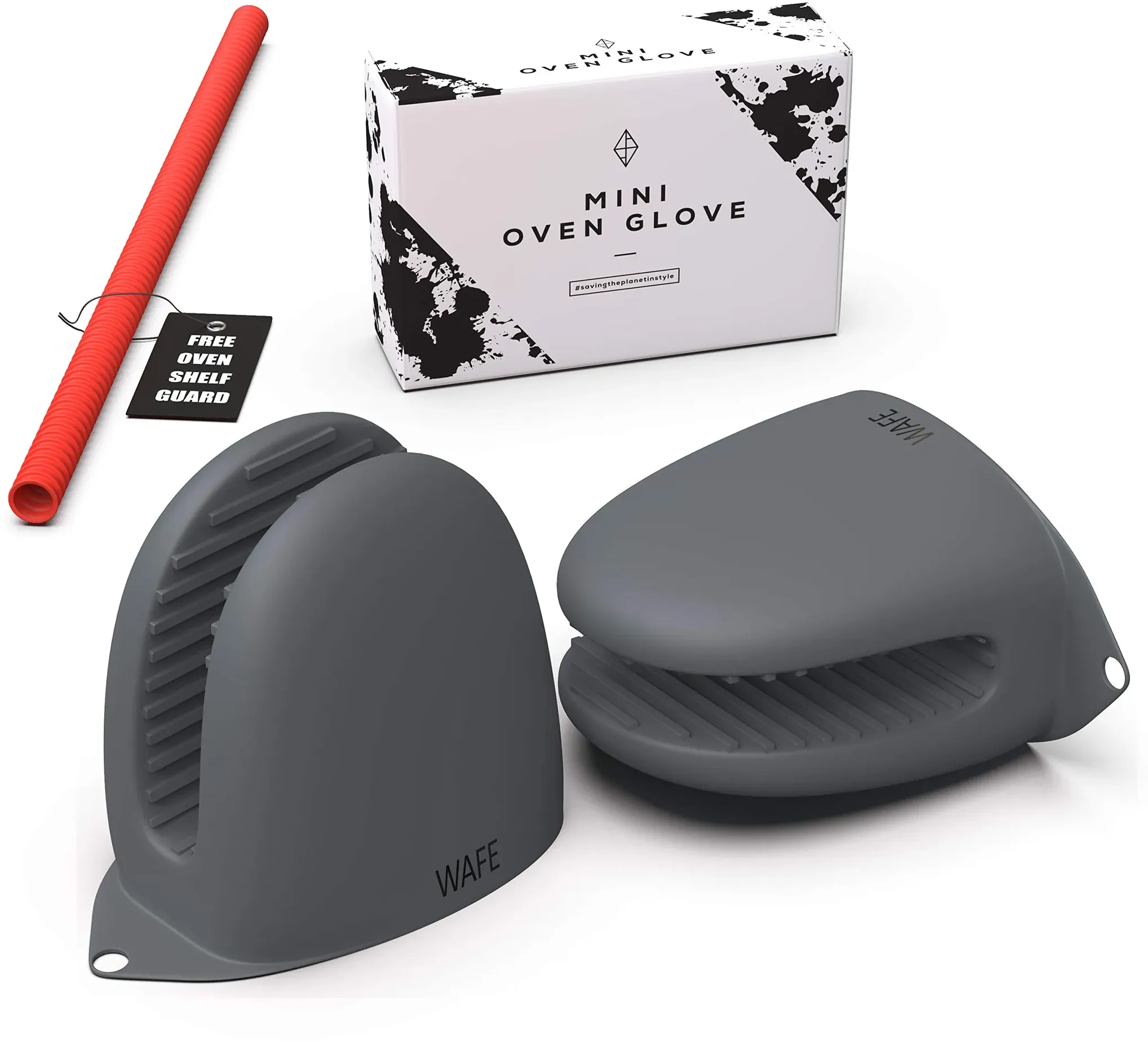 Auf Lager Versand durch AmazonWAFE Mini-Ofenhandschuh ? Topfhandschuhe Anti-Rutsch Hitzebestndige Silikon - Topflappen zum Backen, Kochen, Grillen ? 2er-Set Handschuhe mit ofenregalSchutz, Blau