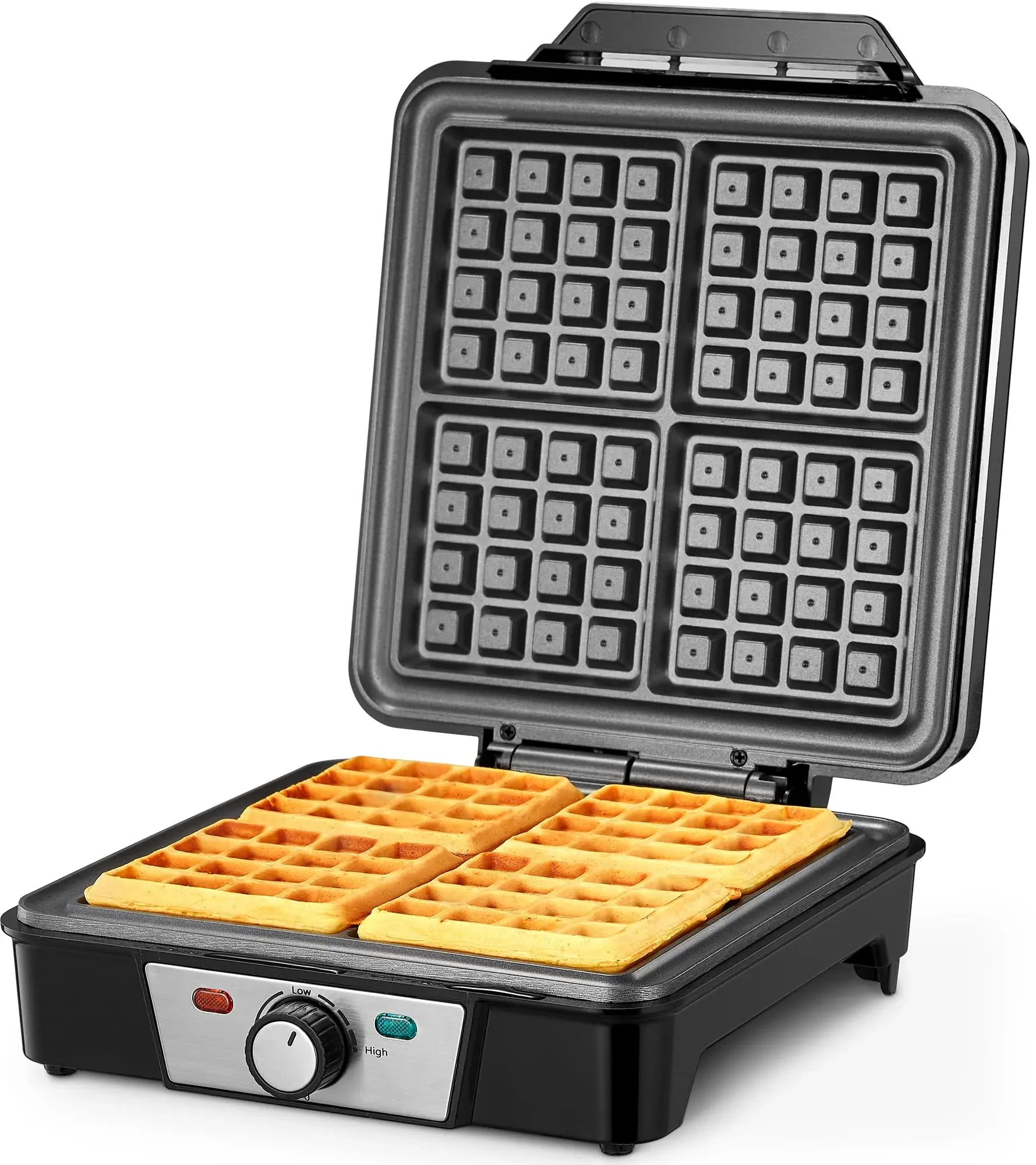 Kategorie: Waffeleisen - REEMIX - 1200W Turbo-Heizsystem für XXL-Waffeln: Backen Sie 4 große 20x20cm Belgische Waffeln gleichzeitig! Dank 1200 Watt Power und präziser Aluminiumplatten in nur 4-6 Minuten goldbraun perfekt für Familienfrühstück oder Gäste-Buffet. Einfache Temperatursteuerung mit Farbfeedback: Rot = Aufheizen, Gelb = Backtemperatur erreicht! Der intuitive Zwei-Farben-Indikator gibt klare Signale kein Rätselraten, wann der Teig eingefüllt werden muss. PFOA-freie Antihaftplatten & Easy-Clean: Kein Anbrennen, kein mühsames Schrubben! Die lebensmittelechte Beschichtung löst jede Waffel sauber ab. Nach dem Abkühlen einfach mit feuchtem Tuch abwischen fertig! 2cm Anti-überlaufrinne & Sicherheitsdetails: Schluss mit verschmierten Arbeitsflächen! Der breite Rand fängt auslaufenden Teig sicher auf. Rutschfeste Füße und hitzegeschützte Griffe ren sicheres Handling. Platzsparend trotz XXL-Leistung: Nur 30 x 25 cm groß, aber macht Waffeln in Caf -Qualität! Passt in jede Küche, ideal auch für Partys, Camping oder Wochenendbrunch. Zusatzvorteil: rter Kundenservice: Sicherheit inklusive: Bei Fragen oder technischer Unterstützung stehen wir lebenslang mit Rat und Tat zur Seite kaufen Sie absolut risikofrei! - 39,99 Euro bei Amazon Marketplace Kitchen - gefunden von billiger.de Das ProfiCook® Waffeleisen ist ideal für belgische Waffeln mit vier Backflächen und stufenlos wählbarem Bräunungsgrad. ![]() ![]() ProfiCook® Waffeleisen für belgische Waffeln mit 4 Backflächen | Waffeleisen belgische Waffel | antihaftbeschichtet Backfläche | stufenlos wählbarer Bräunungsgrad | Edelstahl | 1200 Watt | PC-WA 1241
