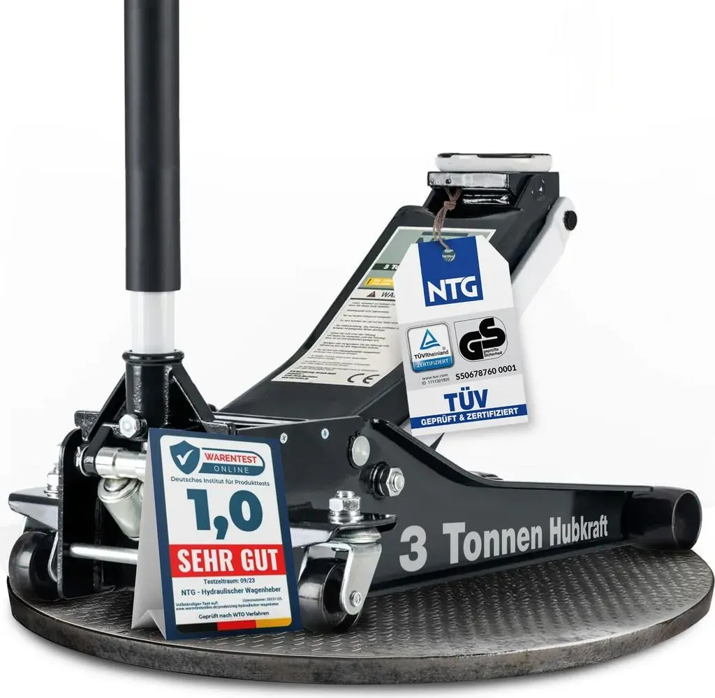 Zustand: Neu - Bodenzüge Kfz-Wagenheber - NTG - WGH.3001 - EAN: 4255743903965 - œ” TÜV-ZERTIFIZIERT: Sicherheit steht bei uns an erster Stelle! Deshalb ist der NTG Wagenheber WGH.BLACK-3001 vom TÜV (Rheinland) geprüft & GS zertifiziert (ID: 1111301926) ausgezeichnet - für geprüfte Qualität und höchste Sicherheitsstandards. œ” HOHE TRAGKRAFT: Der hydraulische Wagenheber hat eine beeindruckende Tragkraft von 3 Tonnen (3000 kg), ideal für verschiedene Fahrzeuge. œ” EXTRA FLACHE BAUWEISE: Mit einer Mindesthöhe von nur 75 mm kann der Rangierwagenheber leicht unter niedrigen Fahrzeugen positioniert werden. œ” Extra Flach auch für tiefere Fahrzeuge geeignet: Unterfahrhöhe: 75mm Hubhöhe: 505mm œ” FLEXIBEL EINSTELLBAR: Der Wagenheber ist von 75 mm bis 505 mm in der Höhe verstellbar, um verschiedene Fahrzeugtypen und Arbeitsbedingungen anzupassen. œ” EINFACHES ANHEBEN: Das Doppelpumpsystem ermöglicht ein schnelles und müheloses Anheben des Fahrzeugs mit minimalem Kraftaufwand. ACHTUNG ! Der Wagenheber besitzt eine Transportsicherung im Rundrohr des Wagenhebers. Diese ist vor der Nutzung zu entfernen. - Verkäufer: Nutzfahrzeug Technik GmbH im amazon.de Marketplace ![]() ![]() NTG Hydraulischer Wagenheber 3T | TÜV Zertifiziert | 75-505mm Hubhöhe | mit Doppelzylinder flach für SUV & Tiefe Autos KFZ PKW Rangierwagenheber 3T 3 Tonnen [EXTRA STABIL 35,2 KG]
