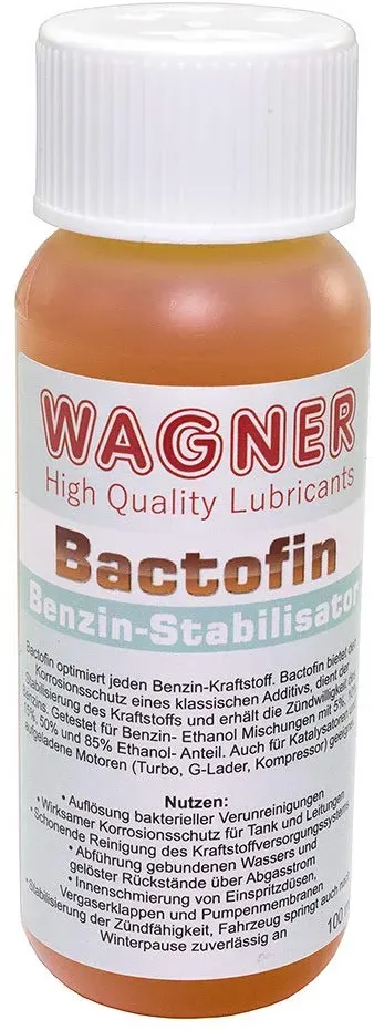 Bactofin schützt den Tank, die Kraftstoffleitungen, Vergaser und Einspritzsysteme vor Korrosion und Ablagerungen, beseitigt bakterielle Kontaminationen, stabilisiert den Kraftstoff über längere Standzeiten (z.B. Winterpause) und sorgt für eine zuverlässige Zündung. Es wirkt auch als bleiersatzähnliches Schmiermittel für Ventile und schützt vor Rost durch die im Benzin enthaltenen Alkohole und die daraus entstehenden Säuren. Zudem reinigt es das gesamte Kraftstoffsystem sanft und effektiv[1][3][5][8]. Die Dosierung beträgt etwa 1 ml Bactofin pro Liter Benzin (1:1000). Es ist für alle 2- und 4-Takt-Benzinmotoren geeignet, auch für Kettensägen und klassische Fahrzeuge[1][6]. Nutzer berichten überwiegend positiv über die Wirkung, insbesondere bei der Vermeidung von Startproblemen nach längeren Standzeiten. Es gibt jedoch auch Stimmen, die auf alternative Methoden wie das Ablassen des Kraftstoffs und Reinigen des Vergasers verweisen, was als effizienter angesehen wird. Die gesundheitlichen Risiken sind bei sachgemäßer Anwendung gering, allerdings ist das Produkt reizend für Haut und Augen und umwelttoxisch, weshalb Vorsicht geboten ist[2][4]. Bactofin wird meist in kleinen Gebinden von 250 ml bis 2 Litern angeboten. Die Preise liegen ungefähr zwischen 10 und 40 Euro, abhängig von der Menge und dem Händler. Ein 250-ml-Fläschchen reicht für ca. 250 Liter Benzin, was es preislich attraktiv macht[3][5][6][10]. Wagner ist eine deutsche Marke, die für hochwertige Spezialschmierstoffe und Additive bekannt ist. Die Produkte werden in Deutschland hergestellt und gelten als qualitativ hochwertig und zuverlässig[1][8][11]. Zusammenfassung für die Kaufentscheidung: Wenn Sie einen zuverlässigen Kraftstoffstabilisator und -reiniger für Benzinmotoren suchen, der speziell gegen die Probleme moderner ethanolhaltiger Kraftstoffe wirkt, ist Wagner Bactofin eine bewährte Wahl. Achten Sie auf die richtige Dosierung und Handhabung, und wählen Sie die Gebindegröße passend zu Ihrem Verbrauch. Die Marke Wagner steht für Qualität, und das Produkt ist bei Nutzern für seine Wirksamkeit anerkannt. Preislich sollten Sie mit etwa 10-40 Euro für 250 ml bis 2 Liter rechnen. Für die Suche im Meta-Preisvergleich können Sie direkt nach Wagner Bactofin suchen. Jetzt live Suche nach wagner bactofin starten! Empfohlene Wagner bactofin Angebote*Durch Käufe über Links zu Händlern kann diese Website eine Provision erhalten, u.a. durch das eBay Partner Network und das AmazonPartnerNetHier ist eine Auswahl von 15 repräsentativen und empfehlenswerten Wagner Bactofin Angeboten, die verschiedene Preisbereiche und Mengen abdecken: Ein sehr preiswertes 100ml Angebot, perfekt für preisbewusste Käufer. ![]() ![]() WAGNER Bactofin - 100 ml eBay Benzinstabilisator / Benzin Zusatz Stabilisator Bleifrei
