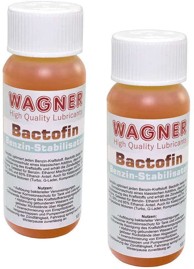 Kategorie: Reinigungsmittel - WAGNER SPEZIALSCHMIERSTOFFE - GTIN:4251595512577 - Schützt vor Ablagerungen. Sorgt für eine dauerstabile Zündfähigkeit. Korrosions- und Verschleißsschutz für Tank, Leitungen, Vergaser oder Einspritzsystem. Reinigungs- und Schmierwirkung. Hält das Kraftstoffsystem sauber. Stabilisiert den Kraftstoff über einen längeren Zeitraum. Wirkt auch als Bleiersatz. Auflösung bakterieller Verunreinigungen. Abführung gebundenen Wassers und gelöster Rückstände über Abgasstrom. Hergestellt in Deutschland !!!!!!!!!!. Hersteller: Wagner Spezialschmierstoffe. Lieferinhalt: 2 Stück 100 ml wird wie auf dem Produktbild abgebildet geliefert. - 22,95 Euro bei Amazon Marketplace Automotive - gefunden von billiger.de Ein Dreierpack mit 3x 100ml bietet eine gute Menge für längere Zeiträume oder mehrere Anwendungen. ![]() ![]() Bactofin Benzin Stabilisator Tankrostschutz 3 Stück á 100 ml