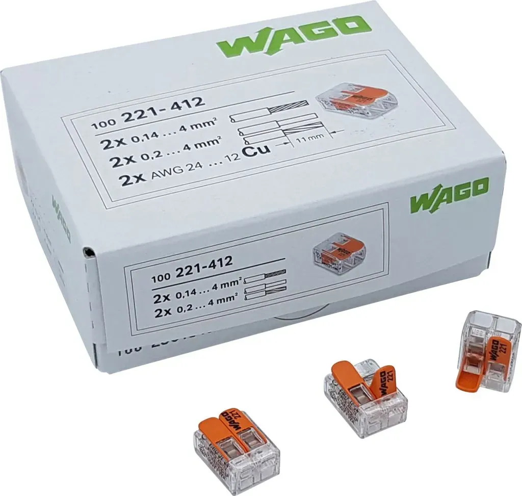 Auf Lager Versand durch AmazonWAGO Verbindungsklemmen 221-412 | 2 Leiter, bis 4 mm², 100 Stück, COMPACT Kabelverbinder mit Hebel für alle Leiterarten weltweit, bestätigte Anwendungssicherheit