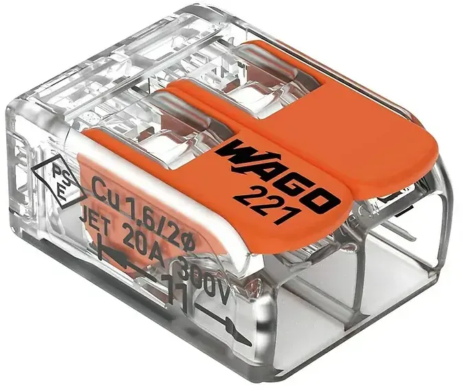 Verfügbarkeit: Gewöhnlich versandfertig in 2 bis 3 Tagen - Kategorie: Sonstige Elektroinstallationsartikel - WAGO - GTIN:4055143637053 - WAGO 221-412 Hebelmuttern, 2-Leiter, kompakte Spleißverbinder, 10 Stück Funktioniert für massive, verseilte und feindrähtige Leiter Einfach zu installierendes Design für bequeme Nutzung Perfekt für die Installation langer Kabel mit größeren Leiterabschnitten - 6,79 Euro bei Amazon Marketplace Automotive - gefunden von billiger.de Ein gutes Preis-Leistungs-Verhältnis für 16 Stück der 2-Leiter-Klemmen, geeignet für kleinere bis mittlere Projekte. ![]() ![]() WAGO® Klemme, 2-Leiter, 4 mm2, Verbindungsklemme mit Hebel, 221-412 (16 Stück)