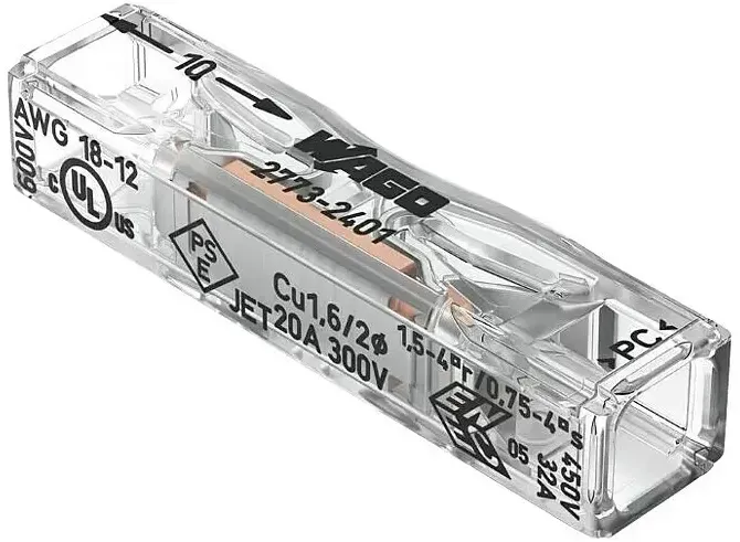 Kategorie: Sonstige Elektroinstallationsartikel - WAGO - GTIN:4066966321630 - # Wago 2773-2401 Durchgangsverbinder zum Stecken für ein- und mehrdrähtige Leiter Leitungen einfach verlängern und reparieren Der Durchgangsverbinder zum Stecken ist das ideale Produkt, um Adern auf kleinstem Raum zu verbinden . Es gibt viele Anwendungsmöglichkeiten für den Durchgangsverbinder zum Stecken, sei es eine zu kurze Ader in der Unterputzdose zu verlängern, ganze Leitungen zu verlängern oder beschädigte Leitungen zu reparieren . Mit dem Durchgangsverbinder zum Stecken verbinden Sie elektrische Adern einfach, schnell und sicher auf kleinstem Raum und das Allerbeste komplett werkzeuglos. Für den Reparaturfall kann der Verbinder dank wartungsfreier Federtechnik mit einem geeigneten Schrumpfschlauch auch Unterputz eingesetzt werden und wird so zum echten Problemlöser und unverzichtbaren Helfer. Dank seiner kurzen und kompakten Bauform lassen sich mehrere Durchgangsverbinder ganz platzsparend hintereinander anordnen. Ihre Vorteile: * Immer sichere und zuverlässige Verbindungen * Minimaler Platzbedarf * Werkzeuglose Push-in-Technik Weitere Eigenschaften: * Einfaches überprüfen der korrekten Abisolierlänge dank aufgedruckter Prüflehre * Optimaler Grip dank integrierter Griffmulde * Sorgt für viel Platz in der Anwendung dank kleinster Abmessungen (29 mm) * Voller Nennstrom für 4mm2-Leiter mit 32 A * Einfaches Prüfen der korrekten Leiterposition durch ein klar transparentes Gehäuse * Leiter ... Dieses WAGO Original-Set mit Verbindungsklemmen und Dosenklemmen ist eine umfassende Lösung für verschiedene Installationsbedürfnisse und bietet eine große Auswahl an Klemmen. ![]() ![]()