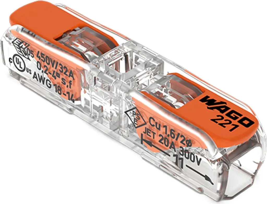 Kategorie: Sonstige Elektroinstallationsartikel - WAGO - GTIN:4066966613261 - Ein durch und durch richtungsweisender Leiteranschluss für alle Leiterarten von 0,2 bis 4 mm2 - unübertroffen einfach, schnell und sicher - dafür steht der neue Durchgangsverbinder der Serie 221 mit Hebel. Dabei vereint er alle bekannten Vorteile der Verbindungsklemmenserie 221 in einem schlanken Design: einen universellen Leiteranschluss, der dank Hebeltechnologie komplett werkzeuglos ist und einen sichtbar sicheren Leiterkontakt bietet. Anschluss ein-, fein- und mehrdrähtiger Leiter von 0,2 bis 4 mm2 in Durchgangsrichtung Minimaler Platzbedarf durch schlanke Maße für beengte Installationsräume Werkzeugloses Verbinden und Lösen von Leitern dank komfortabler Hebeltechnologie Lagefixierung und mehrpolige Installation mit Adapter möglich - 0,59 Euro bei reichelt.de - gefunden von billiger.de Dieses 3er-Pack WAGO Durchgangsverbinder mit Hebel ist eine gute und günstige Einstiegsmöglichkeit, um die Qualität von WAGO zu testen. ![]() ![]() 3x WAGO - 221-2411 Durchgangsverbinder eBay Klemme mit Hebel alle Leiterarten max 4mm²