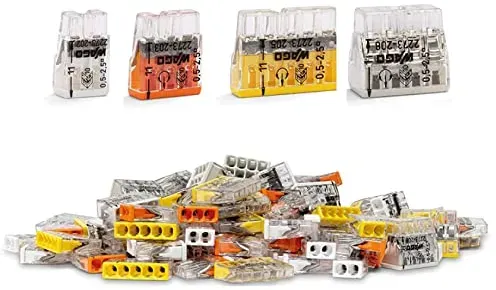 Zustand: Neu - Anschlussklemmen & Kits - WAGO - 2273-205 - EAN: 4066966001808 - KOMFORTABEL und SCHNELL: Kompakte WAGO Dosenklemme mit 5 Klemmstellen, transparentem Gehäuse und Prüföffnungen; zeitersparnis durch einfache Anwendung - schnelle und einfache Installation EINFACHE HANDHABUNG: Komfortabler Leiteranschluss von bis zu 5 abisolierten, eindrätigen Leitern mit einem Querschnittsbereich von 0,5 bis 2,5 mm² - Querschnitte individuell mischbar NORMGERECHT: Die WAGO-Klemmen für normgerechte und schnelle Elektro-Installation, geeignet bei Anwendungen mit einer Umgebungstemperaturen bis 60°C, verfügen über eine weltweit anerkannte Zulassungen QUALITÄT SEIT 1951: WAGO ist Erfinder und Patenthalter der Hebel- und Feder-Klemme und seit über 7 n als führendes deutsches Unternehmen auf schraubenlose Kabelverbinder und Klemmen spezialisiert LIEFERUMFANG: 20 x WAGO COMPACT Verbindungsklemme 2273-205, 5-Leiter, WAGO Schnellanschlussklemmen der Serie 221 sind als 2-, 3- und 5-Leiter Variante erhältlich, transparent, Gewicht: 1,6 g - Verkäufer: Voelkner im amazon.de Marketplace Dieses Angebot ist eine gute Option für den mittleren Bedarf, da es 50 Stück der Wago Verbindungsklemmen zu einem attraktiven Preis anbietet. ![]() ![]() WAGO Verbindungsklemmen | 50 Stück, 5-polig, 450 V, 24 A, Transparent, Kunststoff, freihängend, 5.8 mm, 18-14 AWG