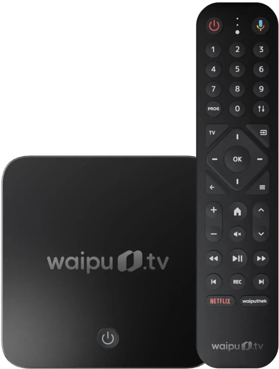 ![]() ![]() waipu.tv Box | Inkl. Fernbedienung mit Beleuchtung | Fernsehen über WLAN | LAN | HDMI | 4K | HDR10+ | Dolby Vision | Dolby Atmos | Voucher für 3 Monate 300 TV-Sender & 40.000 Filme & Serien