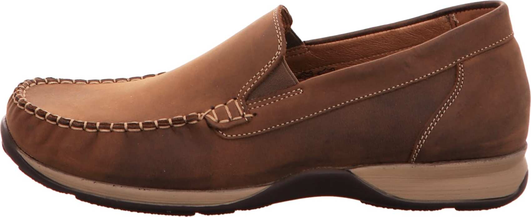EAN: 4058018644972 - Waldläufer Herren Leder Slipper braun 526502-158-026Männer mit Problem-Füßen profitieren von bequemen Slippern aus Leder, besonders bei milden Temperaturen. Denn das geräumige Fußbett in der Weite H bietet mehr Platz und der Slip-On Gummizug erleichtert den Einstieg und passt sich deinen Füßen an. Außerdem weitet sich Echtleder leicht und macht diesen dunkelbraunen Waldläufer Schlupfschuh zu einem idealen Begleiter im Alltag. Der Herrenschuh ist auch innen mit Leder ausgekleidet und die herausnehmbare Decksohle ebenfalls, was besonders hautverträglich ist, Feuchtigkeit absorbiert und im Sommer leicht kühlend wirkt, sodass du den Schuh auch barfuß tragen kannst. ProdukteigenschaftenObermaterial: Leder Farbangabe des Herstellers: tabak Futter: Leder, Kaltfutter Innensohle: Leder, gepolstert, herausnehmbar Laufsohle: flexibel, Synthetik Verschluss: Gummizug, slip-on Schuhspitze: geschlossen, rund Passform: normal Weite: H Stil/Anlass: Basic, Streetwear, klassisch Sonstiges: nicht wasserdicht Der Waldläufer Herko Mokassin aus hochwertigem Nubukleder und mit charakteristischer Handnaht, ist ein echter Klassiker und ein absolutes Leichtgewicht. Durch die Bequemweite H mit der schmalen Ferse, bietet der Schuh auch einem kräftigeren Fuß den optimalen Platz und Halt. Das Nubukleder ist besonders weich, anschmiegsam und trotzdem formstabil. Das luftgepolsterte Wechselfußbett kann bei Bedarf, auch durch eine orthopädische Einlage ersetzt werden. Die Waldläufer ... ![]() ![]() Waldläufer Harald - CRAZY-HORSE tabak eBay Herren Sandale in Braun