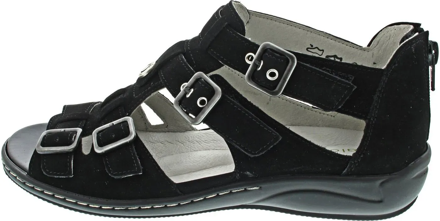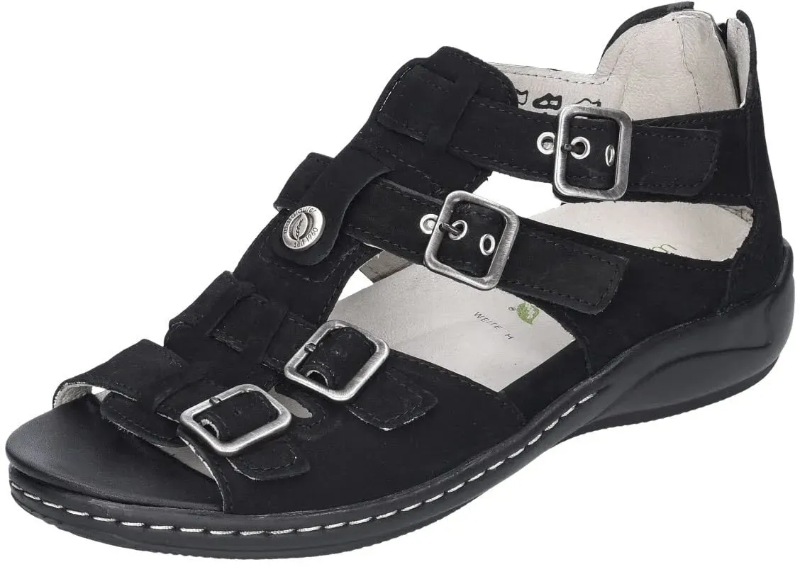 Kategorie: Sandalen - WALDLäUFER - GTIN:4045266669819 - Laufkomfort spürbar erleben herausnehmbares Fußbett mit Klett stabilisiert schmale Ferse dezent integrierter Klettverschluss in Schnallenoptik Reißverschluss an der Ferse - 92,94 Euro bei Amazon Marketplace Shoes - gefunden von billiger.de ![]() kaufland.d e Waldläufer Komfort Sandalen Hilena Damen 3435363835 Schwarz 38 EU 582002-191-001