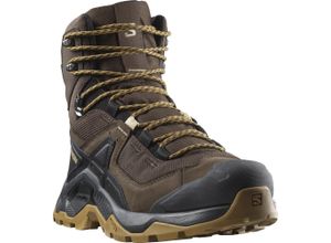 Wanderschuhe Schuhe Herren Sportschuhe - EAN:7615537420448 - Stylischer Multisportschuh On kann nicht nur Lauf- oder Trailrunningschuhe! Der Cloudhorizon ist dafür das beste Beispiel. Der Multisportschuh ist für beinahe alles geeignet, bei dem das Tempo angezogen wird. Dank erstklassiger Dämpfung, luftigem Aufbau und geringem Gewicht ist der Halbschuh vor allem für sportliche Aktivitäten bestens geeignet. Das für On typische, dadurch aber nicht weniger stylische urbane Aussehen des Schuhs macht ihn aber auch im Alltag zu einem prima Begleiter. Pflegeleicht und widerstandsfähig Dass der flotte Halbschuh kaum ins Gewicht fällt, hast du hauptsächlich den zum Einsatz kommenden Materialien zu verdanken. Ausschließlich synthetische Materialien kommen hier zum Einsatz. Diese machen den Schuh aber nicht nur besonders leicht, sondern auch pflegeleicht. Das Mesh-Obermaterial lässt sich leichter reinigen als Leder und ist dabei zugleich gegenüber diversen Pflegemitteln deutlich unempfindlicher. Das Material ist zudem leicht wasserabweisend. Wenn leichter Tau Felder und Waldwege überzieht, brauchst du dir also nicht sofort Sorgen über nasse Füße zu machen. Wie alle On-Schuhe verfügt auch der Cloudhorizon über eine Sohlenkonstruktion samt hinlänglich bekannten Cloud-Dämpfungselementen. Diese wirken stark stoßabsorbierend, wodurch sie Ermüdungserscheinungen vorbeugen. Auch weite Wanderungen und sehr lange Tage sind für dich somit kein Problem. Die griffige Gestaltung der Laufsohle ... Dieser Salomon Quest Element Gore-Tex Wanderschuh ist eine robuste und wasserdichte Option für anspruchsvolle Trekkingtouren. ![]() Wanderschuh SALOMON 'QUEST ELEMENT GORE-TEX', Herren, Gr. 45, delicioso, schwarz, dull gold, Leder, Schuhe Wanderschuh, wasserdicht
