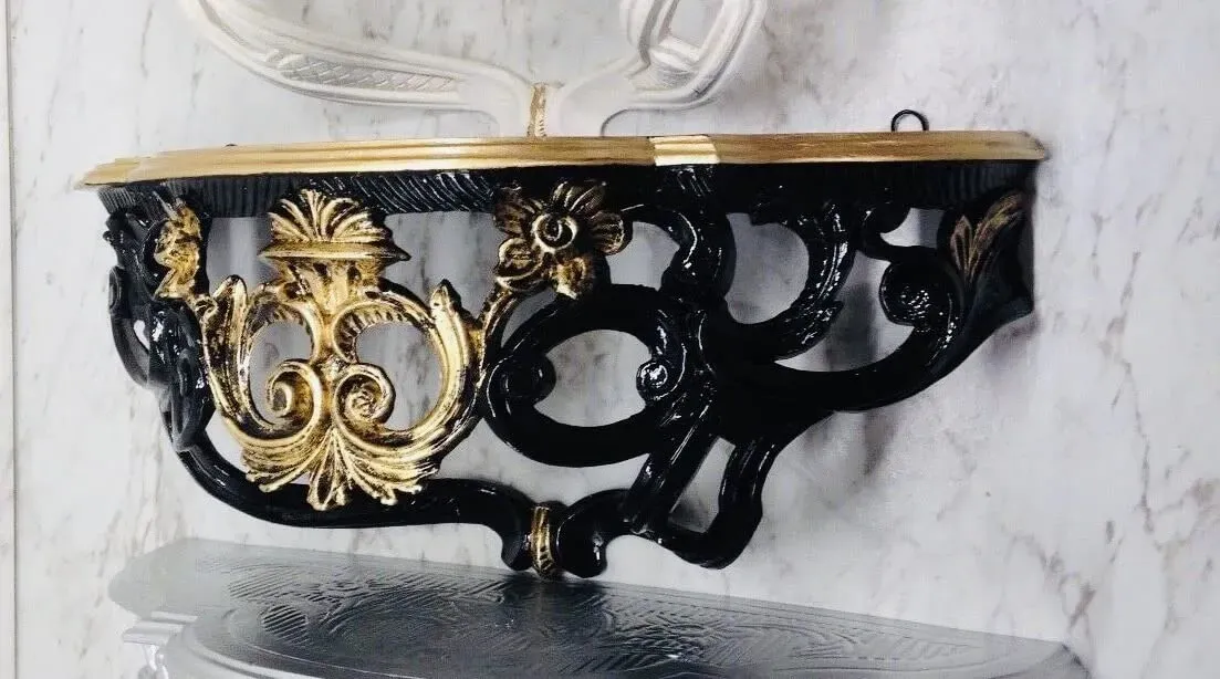 Kategorie: Zubehör für Möbel - Artissimo - GTIN:0765643560051 - artissimo Barock Konsole, Wandkonsole Gold Spiegelkonsolen Antik Wandregal Wandablage - 39,00 Euro bei Amazon Marketplace Home - gefunden von billiger.de Diese Wandkonsole in Schwarz-Gold ist eine vielseitige Option, die sowohl als Ablage als auch als Spiegelkonsole dienen kann. ![]() ![]() Artissimo Barock Konsole Wandkonsole/Spiegelkonsolen/Wandregal 40 x 17 ANTIK (Schwarz-Gold)
