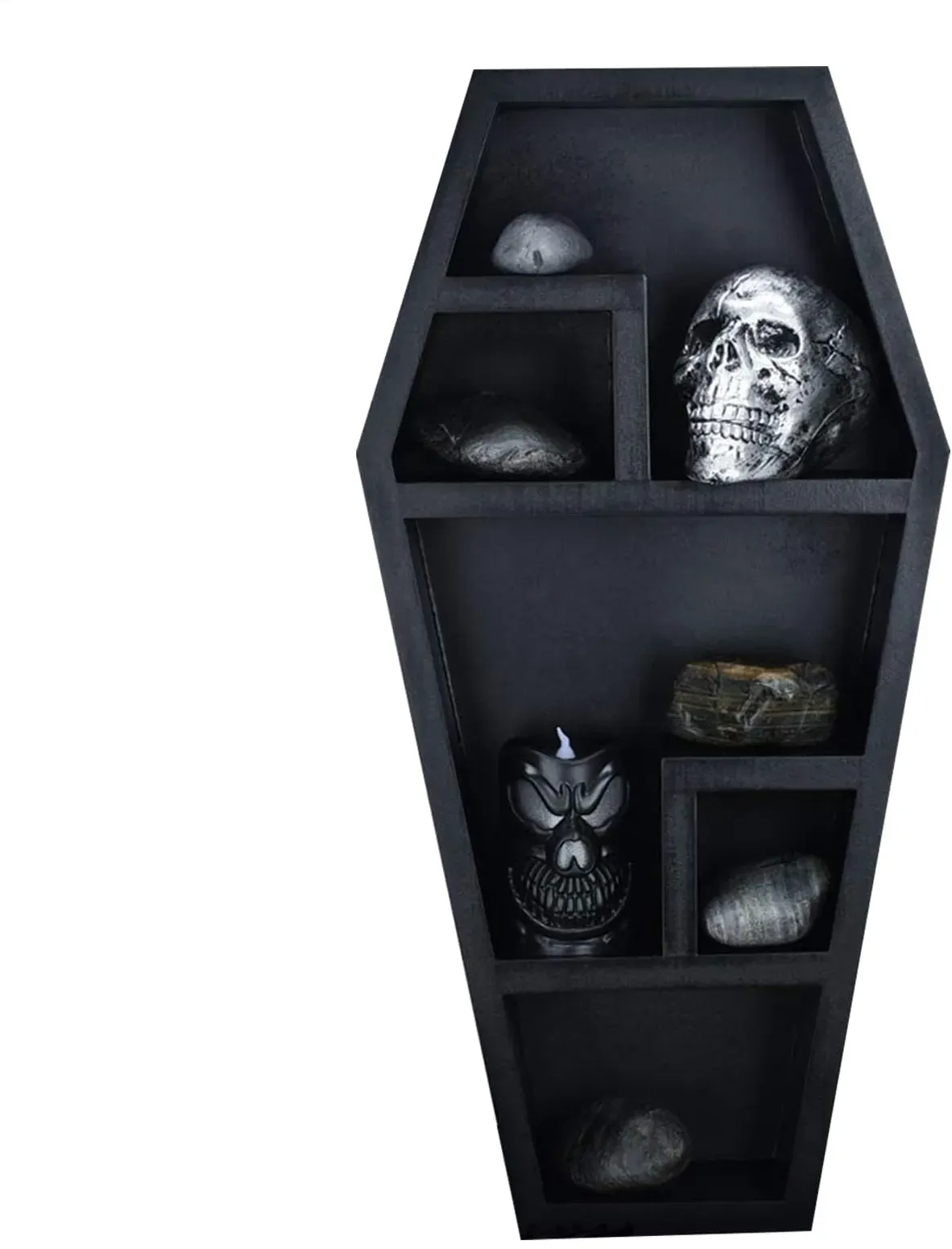 Verfügbarkeit: Auf Lager - Kategorie: Regale - dwafill - Sargregal Gothic: Das Regal Schwarz Sarg-Design bietet Platz für verschiedene Gothic- und Gruselelemente. Dunkler Stil: Gothic Wandregal bringt von Haus aus Gothic-, Horror- und Punk-Elemente mit und verleiht so jedem Raum wie Schlafzimmer, Badezimmer oder Küche eine geheimnisvolle und avantgardistische Atmosphäre. Ausstellung unheimlicher Gegenstände: Auf dem Sarg Deko-Regal können verschiedene gruselige Gegenstände präsentiert werden, wie Horror-Dekoration, Gothic-Figuren oder Bausteine, um die Ansprüche von Sammlern dunkler Stilrichtungen zu erfüllen. Festliche Atmosphäre: Das Design des Gothic Wandregal eignet sich perfekt für gruselige Dekorationen zu Halloween, Weihnachten und Ostern. Durch die Ausstellung von Festtagsdekoration wird der Raum sofort mit einer unheimlich faszinierenden Stimmung gefüllt. Alltagsgebrauch: Der schlichte und ansprechende Look des Sarg Regal macht es zu einem praktischen Aufbewahrungsregal für verschiedene Gegenstände. Keine komplizierte Montage erforderlich. - 25,64 Euro bei Amazon Marketplace Home - gefunden von billiger.de Dieses Sarg-Wandregal ist ein klassisches Gothic-Element und bietet eine solide Aufbewahrungsmöglichkeit. ![]() ![]() Sarg- Holz Gothic Sarg Make-up Halter | Solides schwebendes Wandregal schwarz Halloween Lagerregal | Gothic schwimmende Sargregale gruselige Heimdekoration