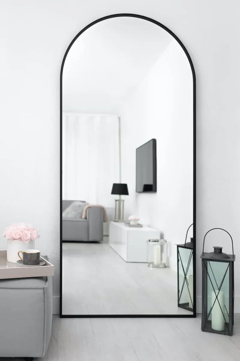 Gewöhnlich versandfertig in 4 bis 5 TagenMySpiegel.de Rundbogen Wandspiegel mit Alurahmen in Schwarz 70 x 180 cm